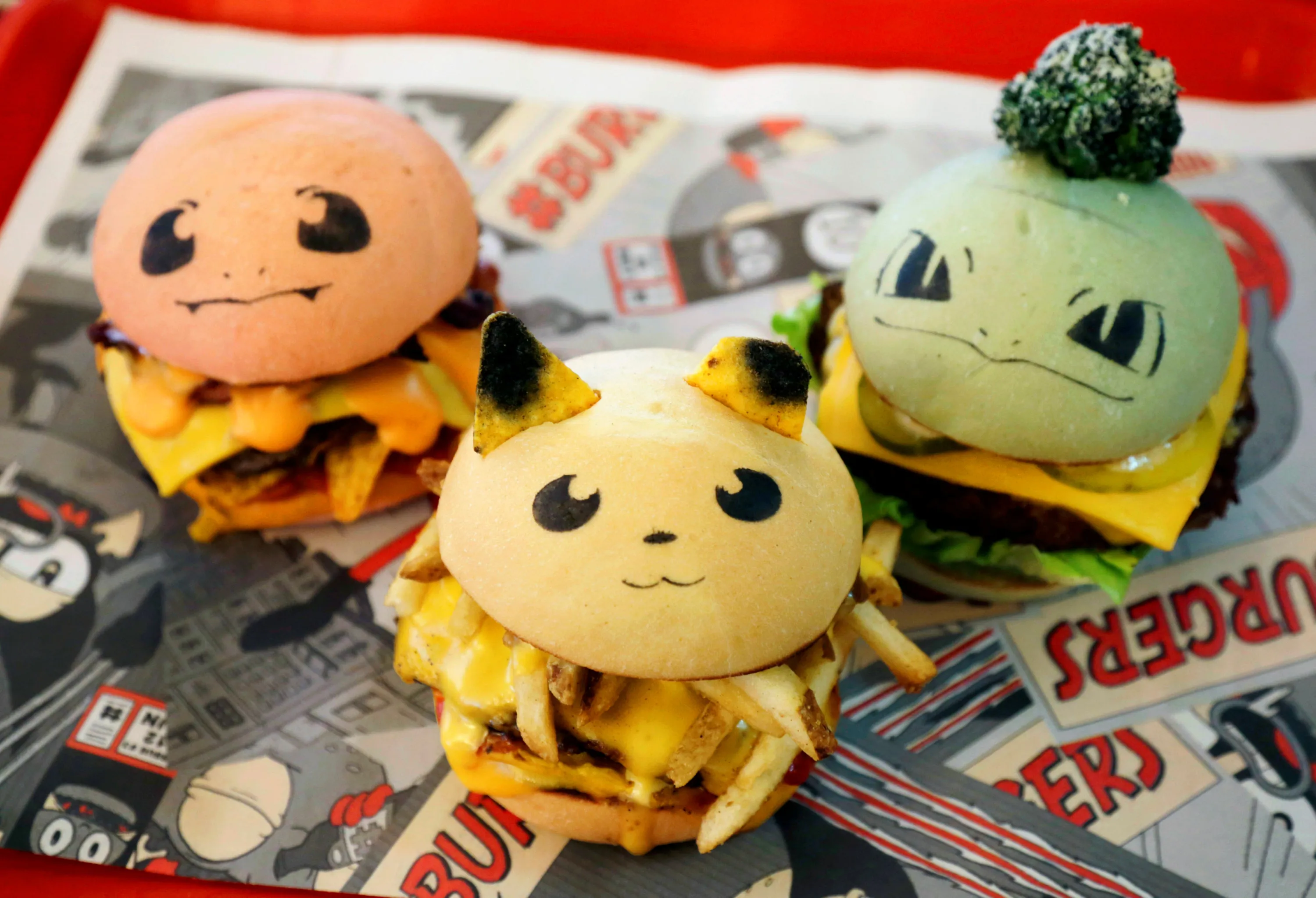 Pokeburgs, hamburgers in the form of Pokemon characters, are seen at Down N' Out Burger restaurant in Sydney, Australia, August 26, 2016. The restaurant sells a limited number of Pokeburgs per day, with the names (L-R) Chugmander, Peakachu and Bulboozaur, capitalizing on fans' appetite for Pokemon Go, the location-based augmented reality game. (Photo by Jason Reed/Reuters)