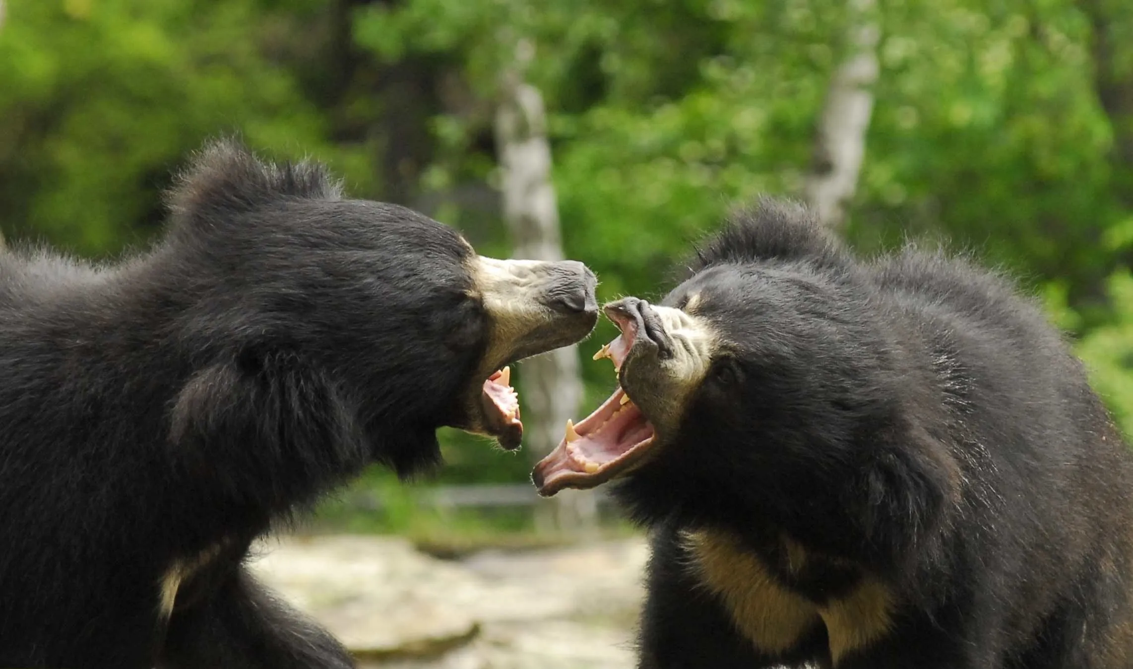 Black Sloth Bear wounding round, fighting and standing up in the Berlin zoo, Germany on August 25, 2016. (Photo by Tollkühn/Ullstein Bild via Getty Images)