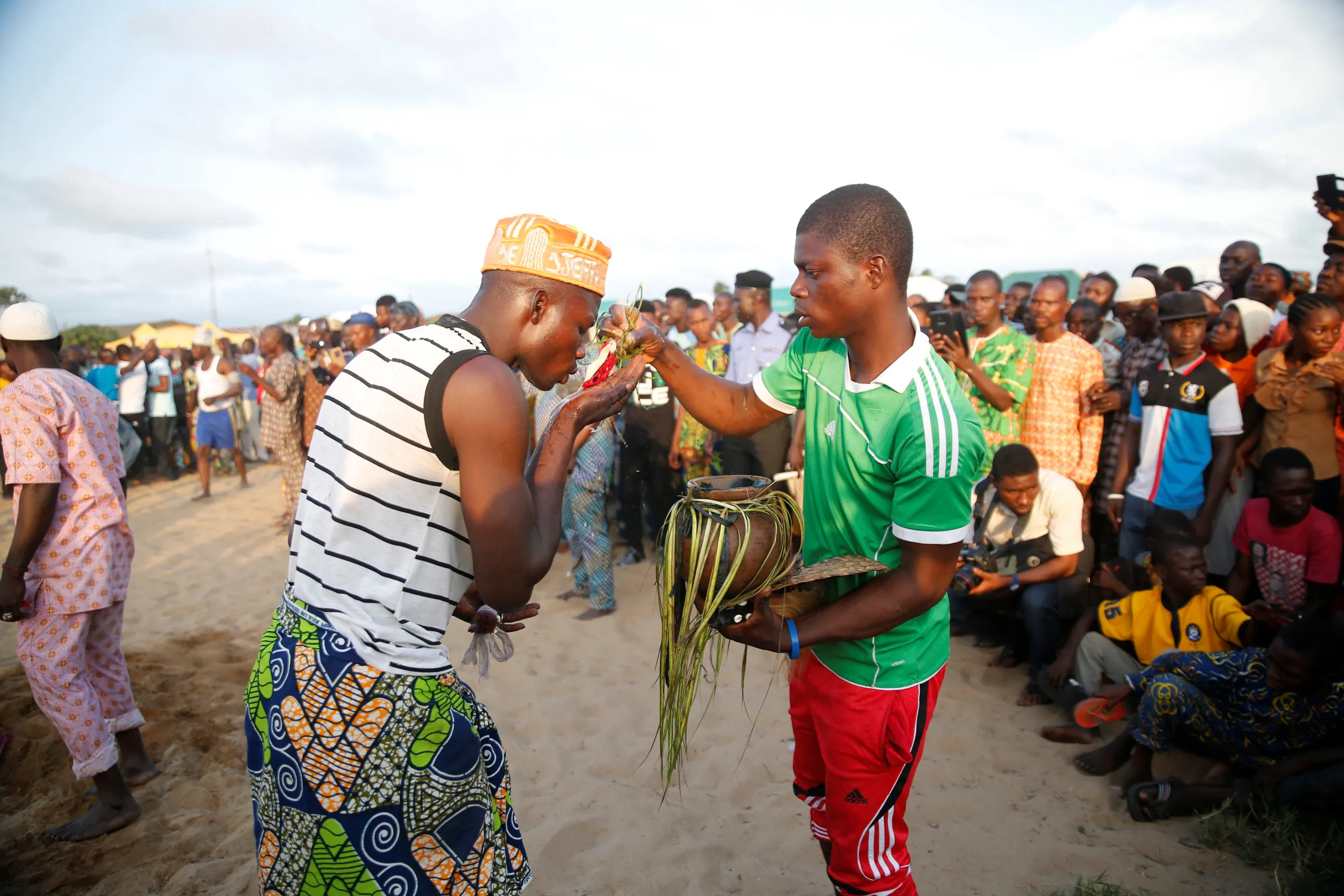 Traditional performers participate in the annual Badagry cultural festival near the old slave port in Badagry, on the outskirts of Lagos, Nigeria August 27, 2016. (Photo by Akintunde Akinleye/Reuters)