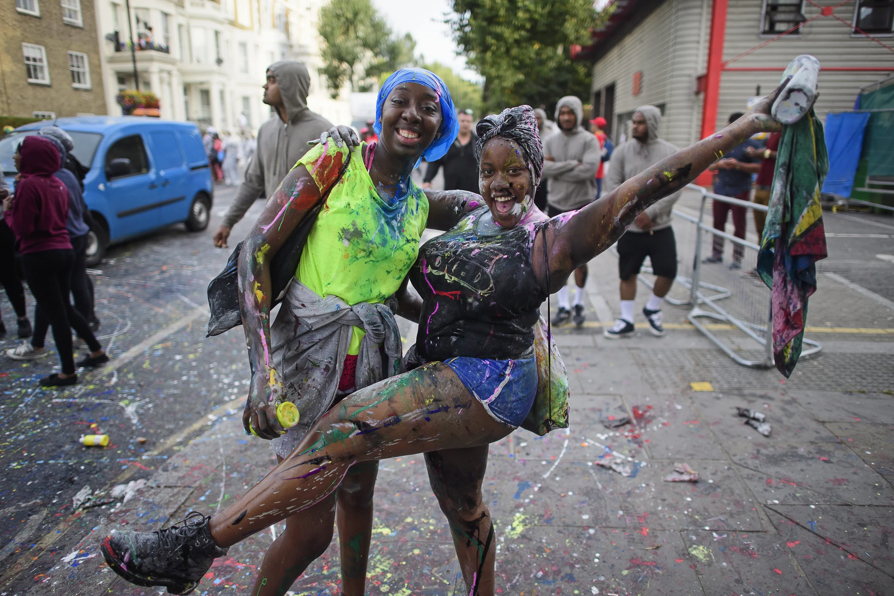 Revellers enjoy Jouvert, a paint fight that officially marks the start of the Notting Hill carnival in London, UK on August 28, 2016. (Photo by Ben Cawthra/London News Pictures)