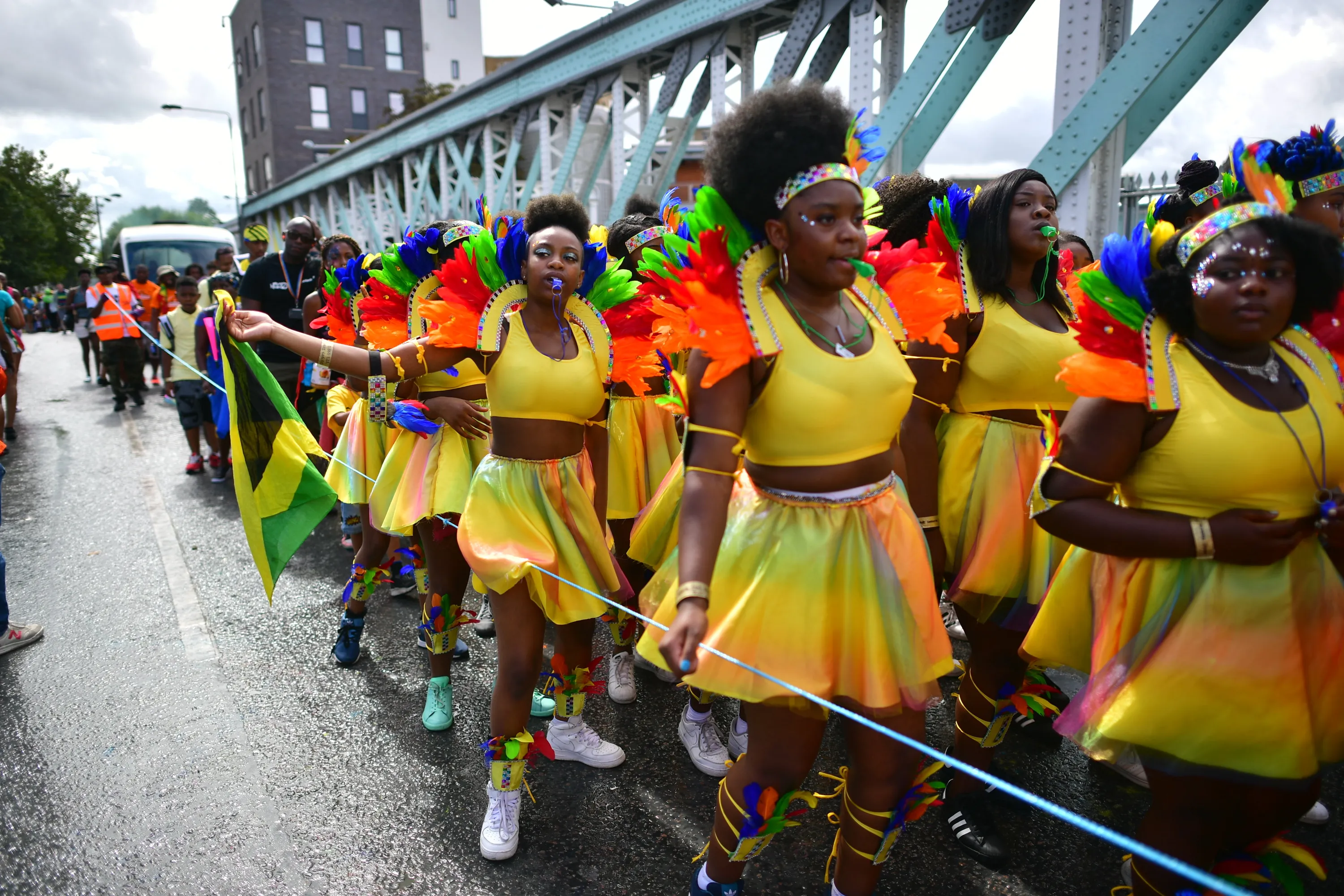 Revellers and carnival goers brave damp conditions as they enjoy family day, the first day of the Notting Hill carnival in London, UK on August 28, 2016. (Photo by Ben Cawthra/London News Pictures)