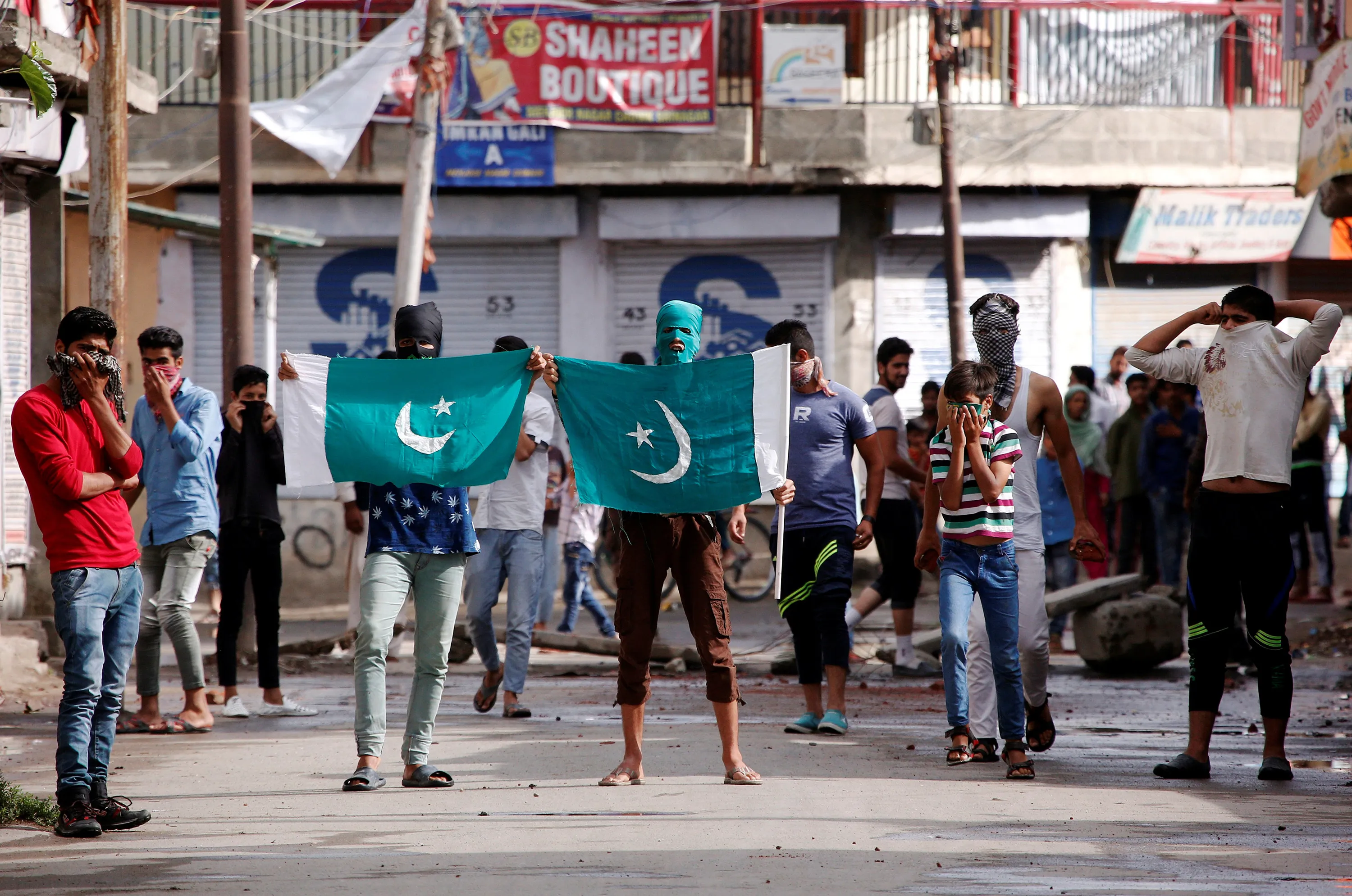 Protesters hold the flag of Pakistan during a protest in Srinagar against the recent killings in Kashmir, August 26, 2016. (Photo by Danish Ismail/Reuters)