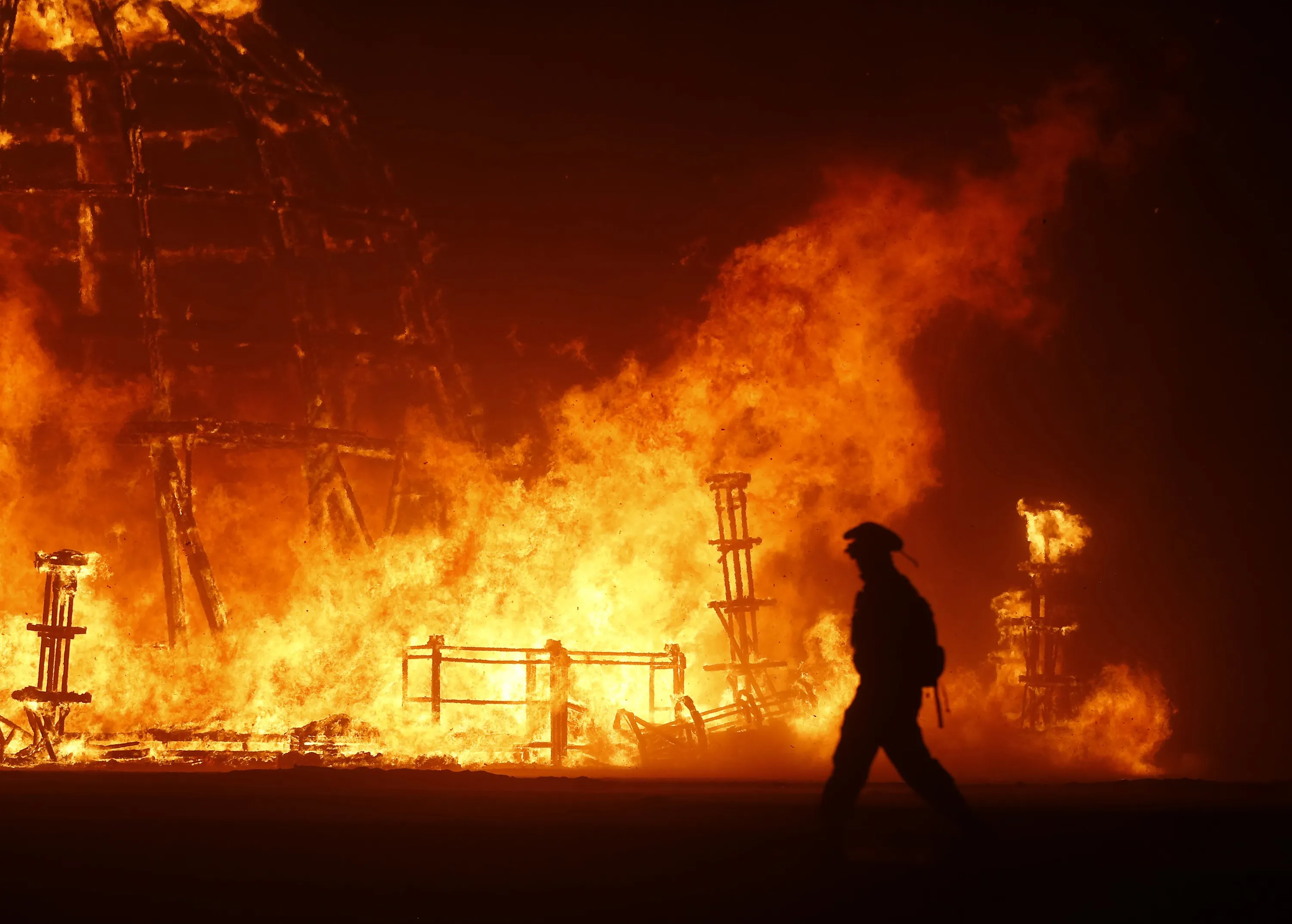 The Temple of Grace burns on the last day of the Burning Man 2014 “Caravansary” arts and music festival in the Black Rock Desert of Nevada, August 31, 2014. (Photo by Jim Urquhart/Reuters)