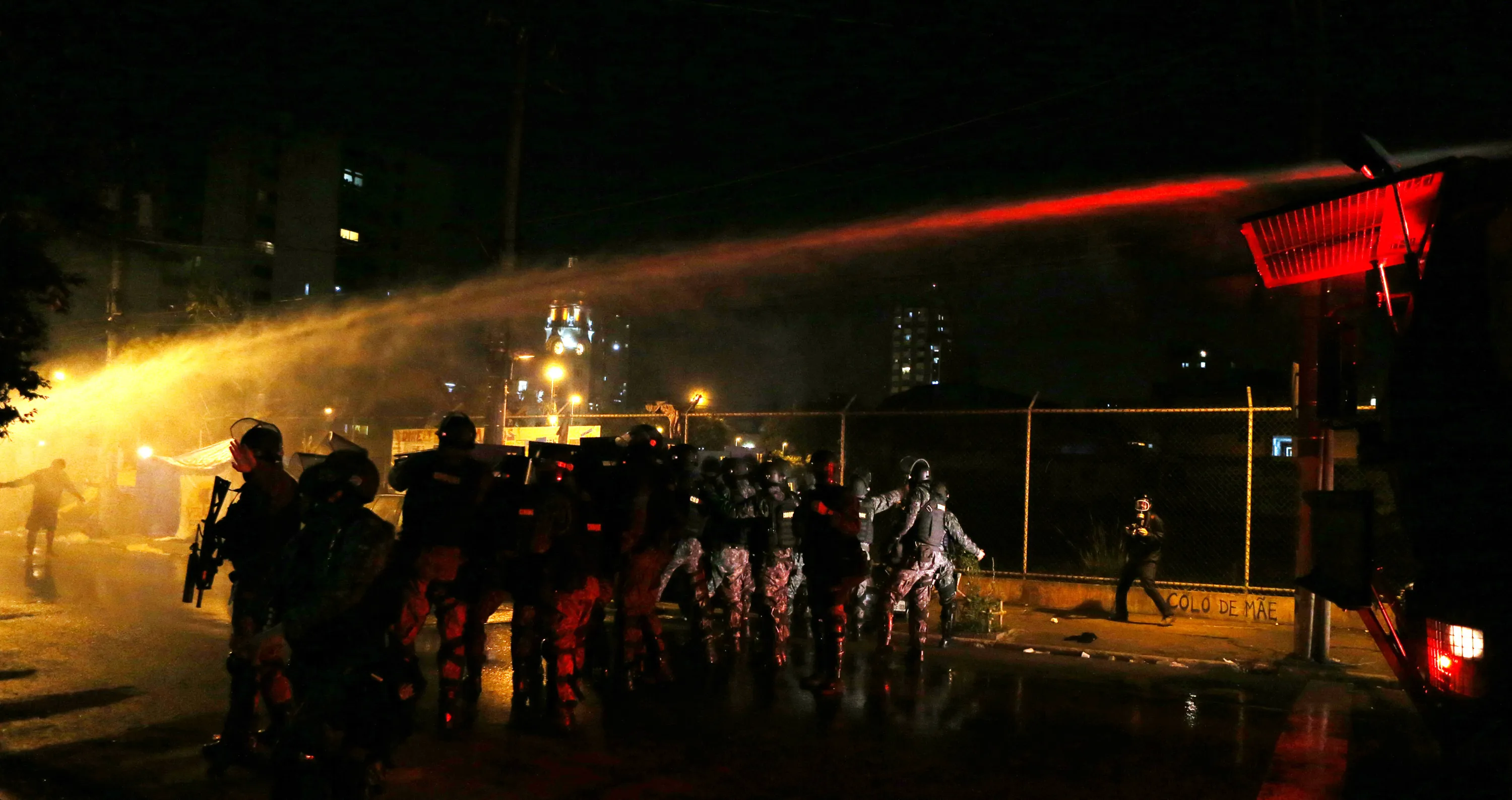 Riot police ue a water canon during a protest by supporters of Dilma Rousseff in Sao Paulo, Brazil August 31, 2016. (Photo by Paulo Whitaker/Reuters)