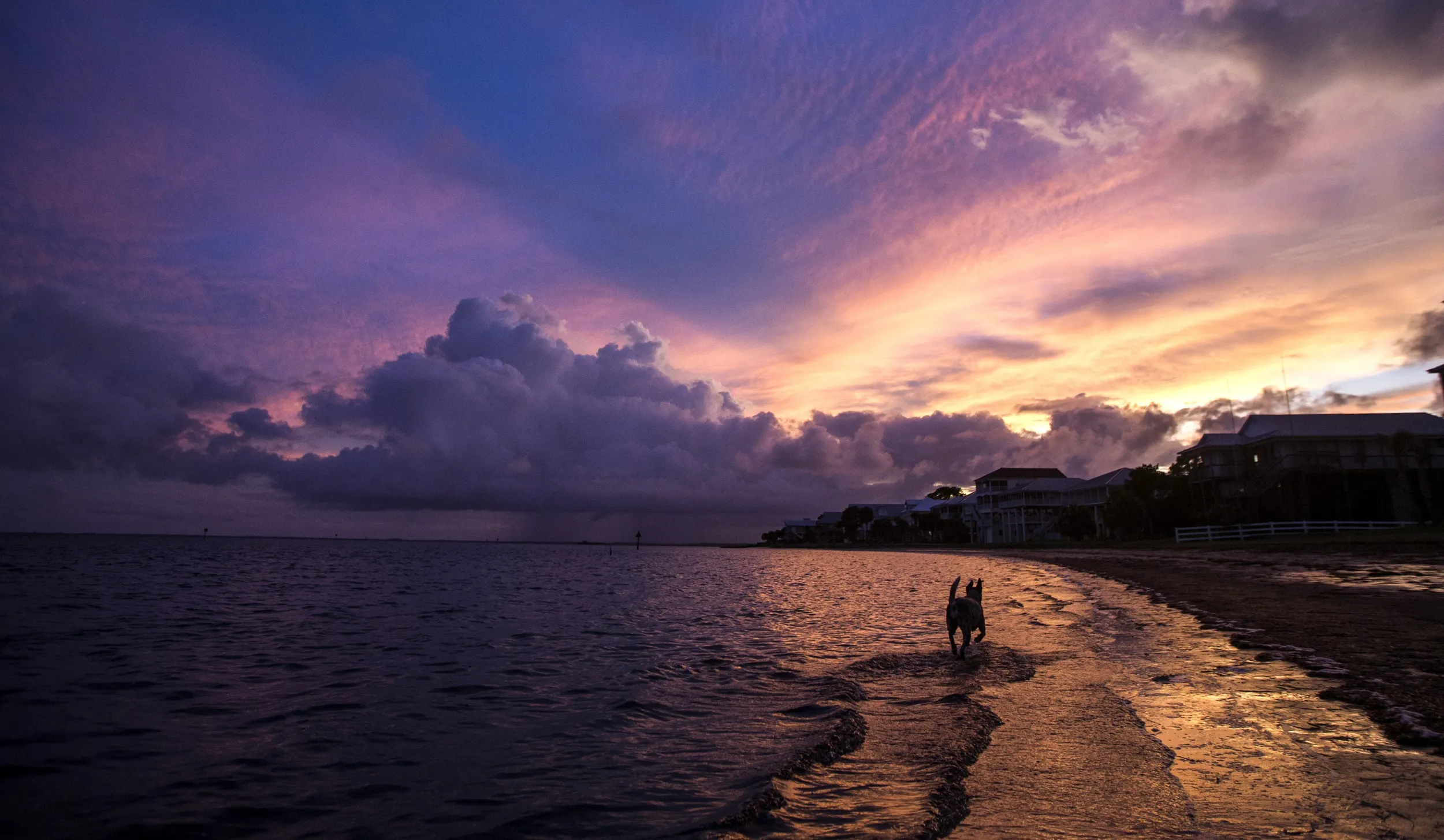 A dog wades through the shallow water prior to the arrival of tropical storm Hermine at Shell Point Beach August 31, 2016 near Crawfordville, Florida. Areas south of Tallahassee are under mandatory evacuation orders according to the Wakulla County Sheriff's Office. (Photo by Mark Wallheiser/Getty Images)