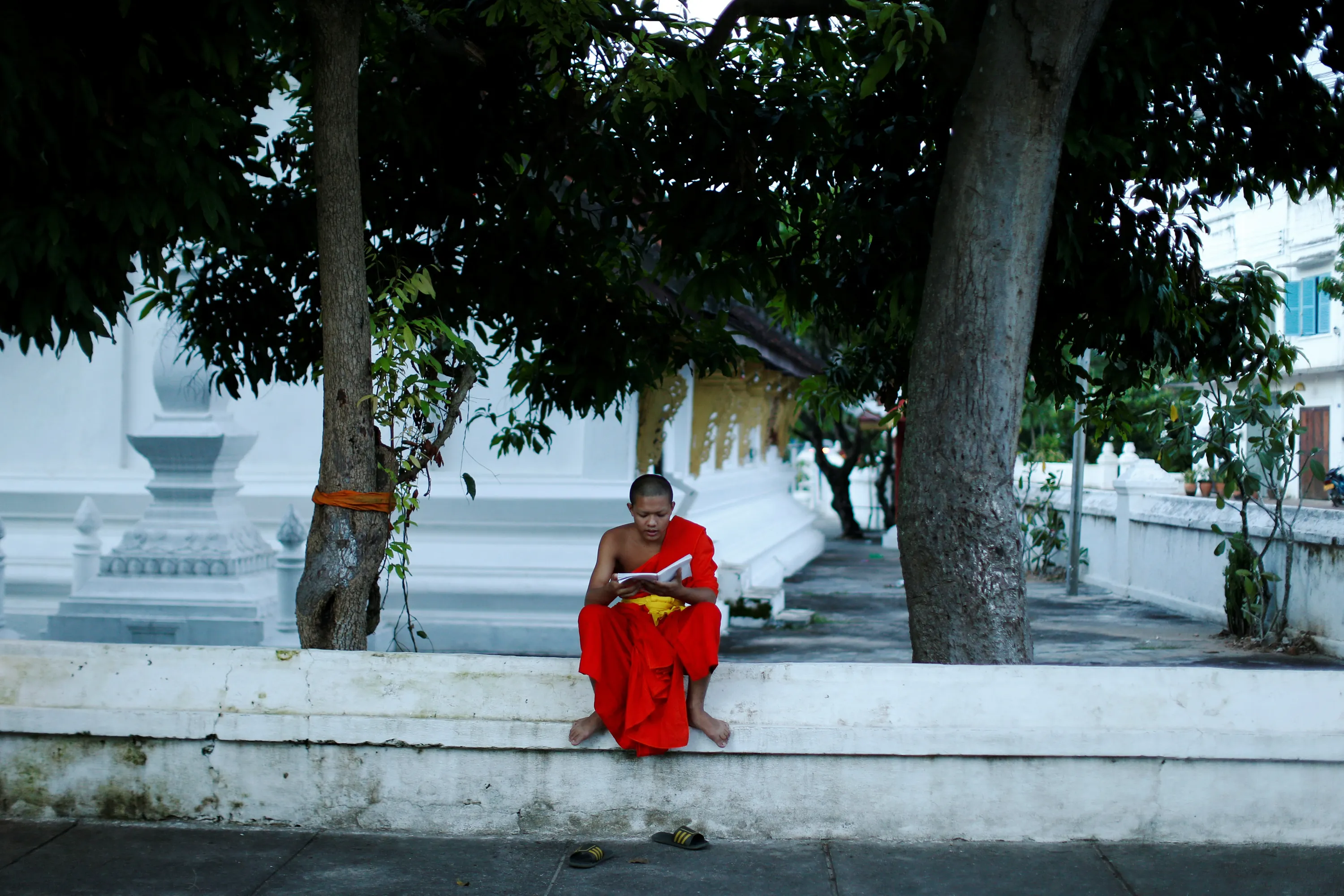 A Buddhist monk reads a book outside a temple in Luang Prabang, Laos July 31, 2016. (Photo by Jorge Silva/Reuters)