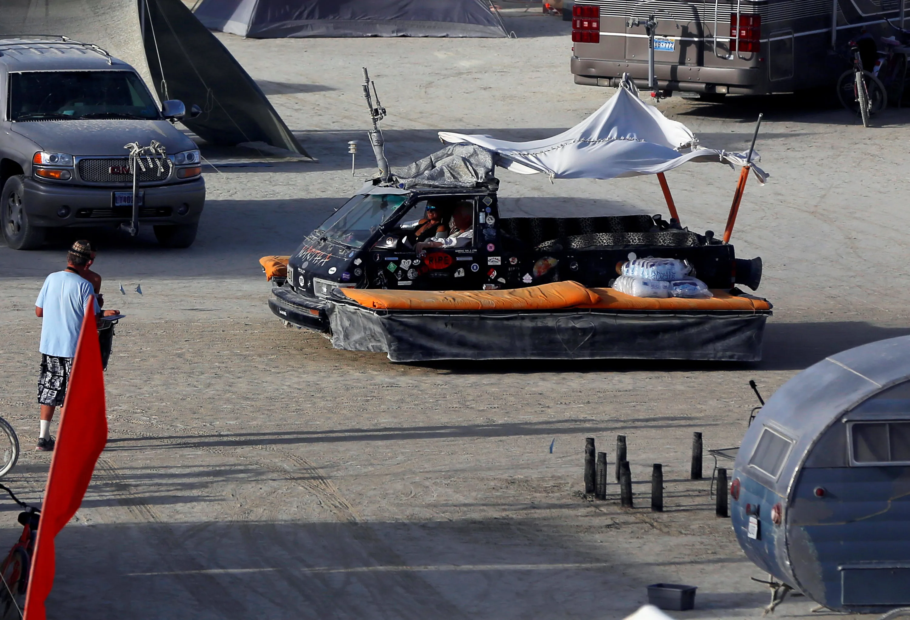 A mutant vehicle drives through Black Rock City as approximately 70,000 people from all over the world gather for the 30th annual Burning Man arts and music festival in the Black Rock Desert of Nevada, U.S. September 2, 2016. (Photo by Jim Urquhart/Reuters)