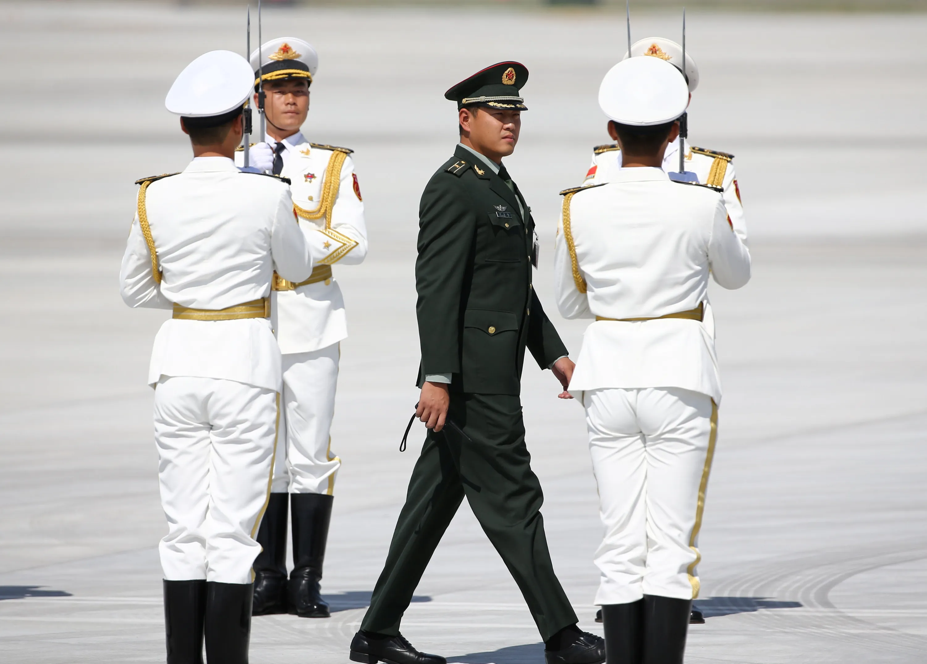 Honour guards stand at attention before the arrival of U.S. President Barack Obama (not pictured) at Hangzhou Xiaoshan international airport before the G20 Summit in Hangzhou, Zhejiang province, China September 3, 2016. (Photo by Damir Sagolj/Reuters)