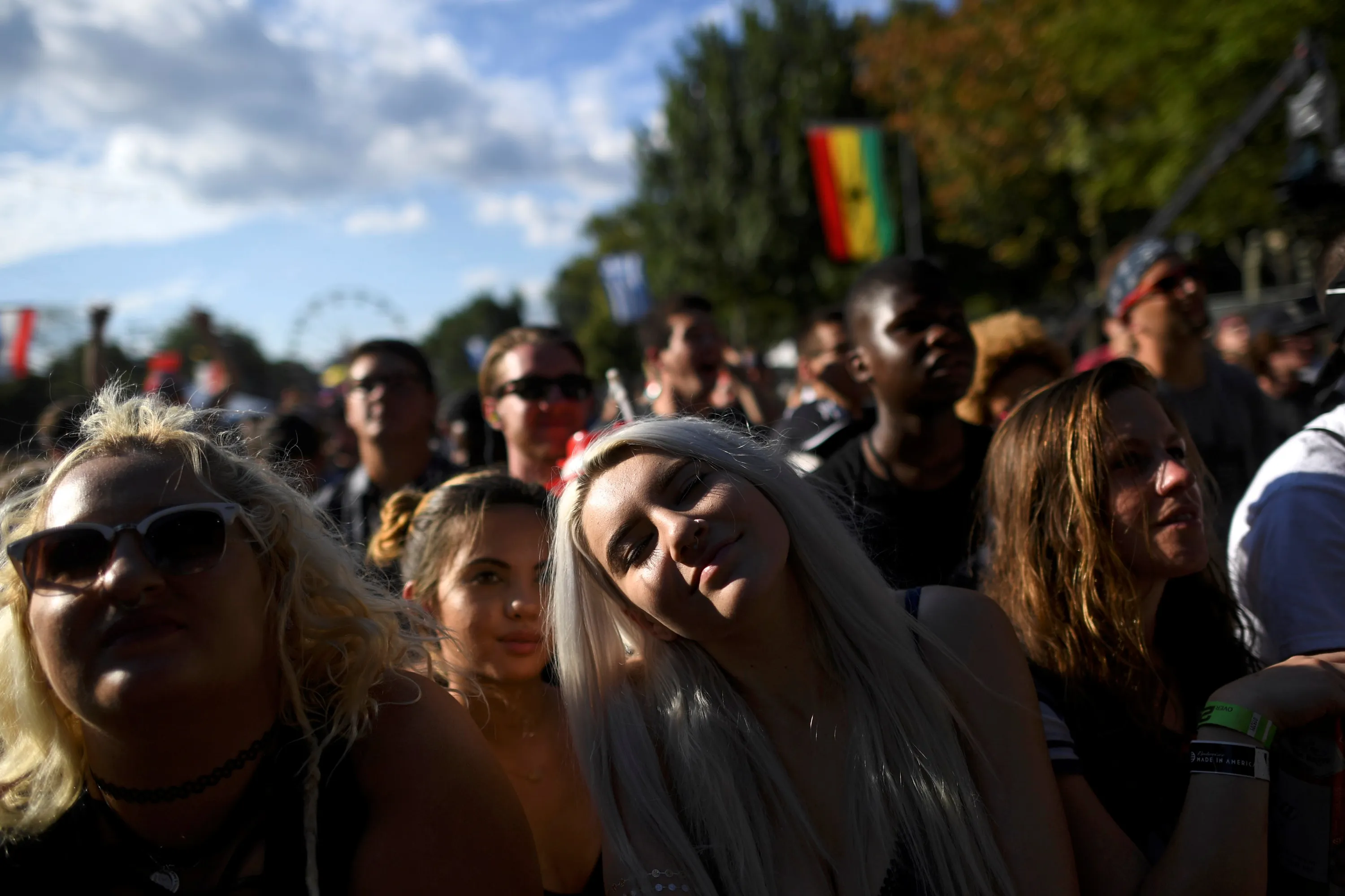 Cara Food, 18, (C) dances while Car Seat Headrest plays during the fifth annual Made in America Music Festival in Philadelphia, Pennsylvania September 3, 2016. (Photo by Mark Makela/Reuters)