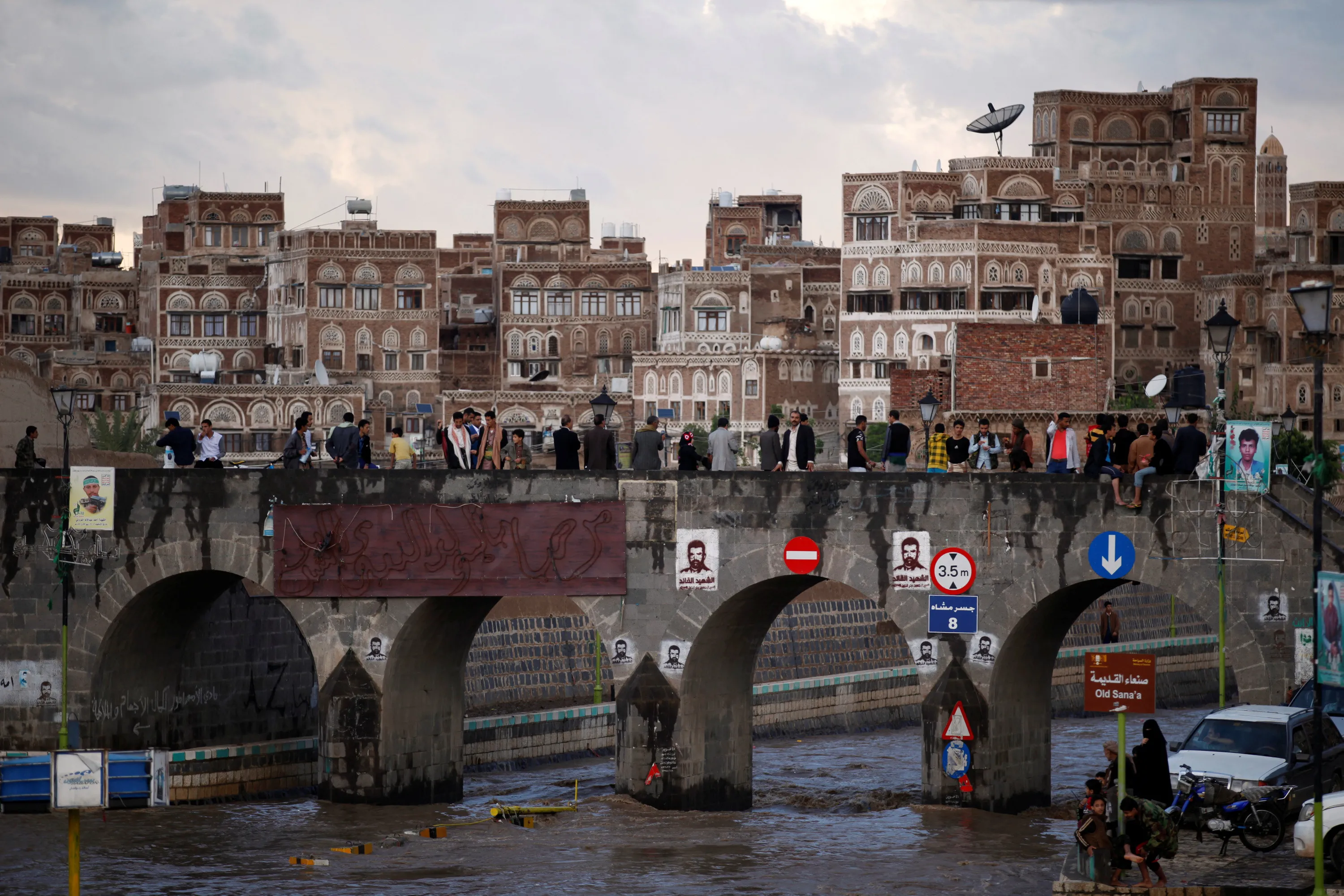 People stand on a bridge to watch flood water in the Old City of Sanaa, Yemen August 2, 2016. (Photo by Khaled Abdullah/Reuters)
