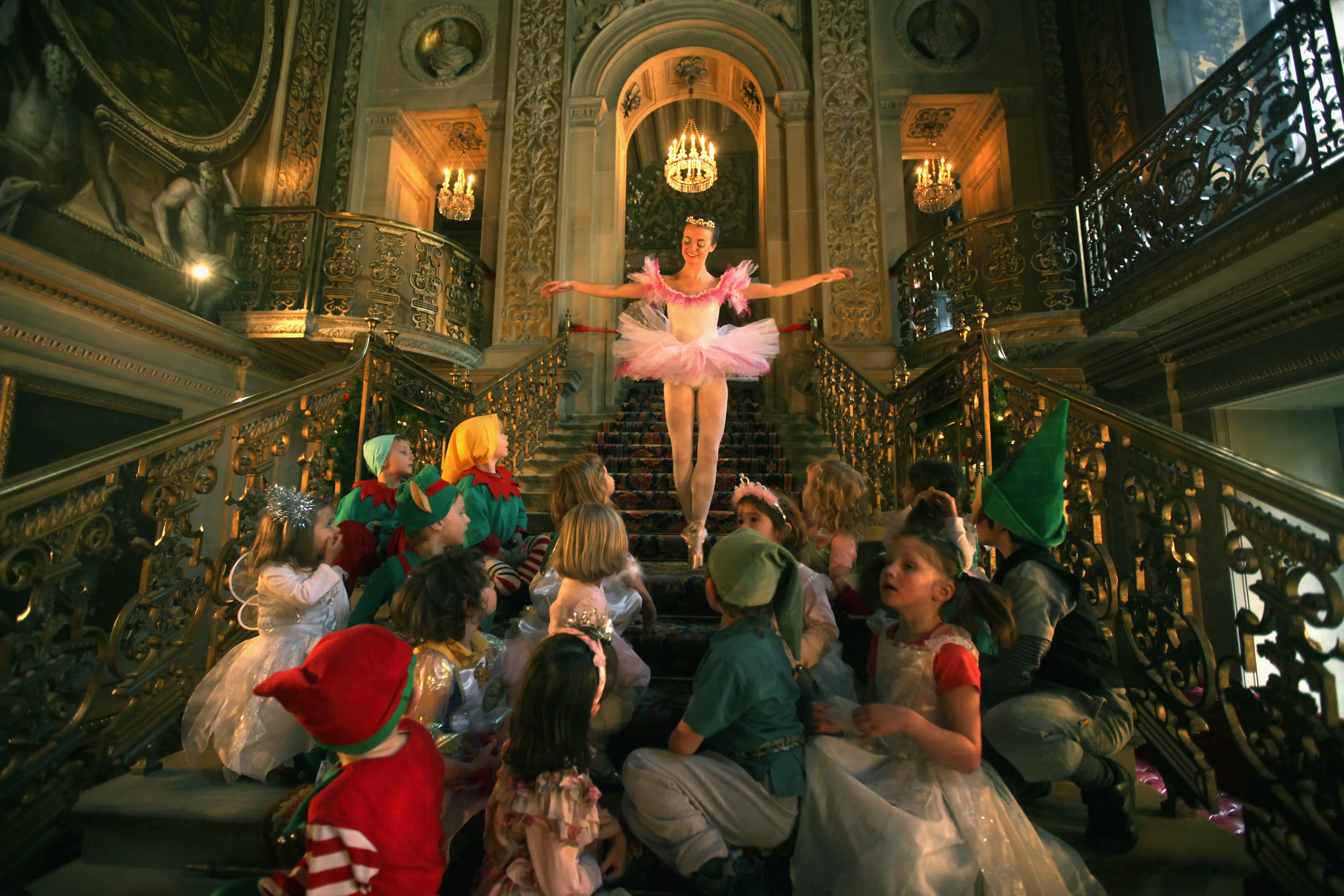 CHATSWORTH, ENGLAND - NOVEMBER 09: The Sugar Plum Fairy, alias Chatsworth guide Claire Fowler, entertains local school children in the painted hall of Chatsworth as the stately home's Russian themed Christmas events get underway on November 9, 2010 in Chatsworth, England. The Derbyshire stately home of the Duke and Duchess of Devonshire has been transformed for the festive season into a scene reminiscent of The Nutcracker. (Photo by Christopher Furlong/Getty Images)