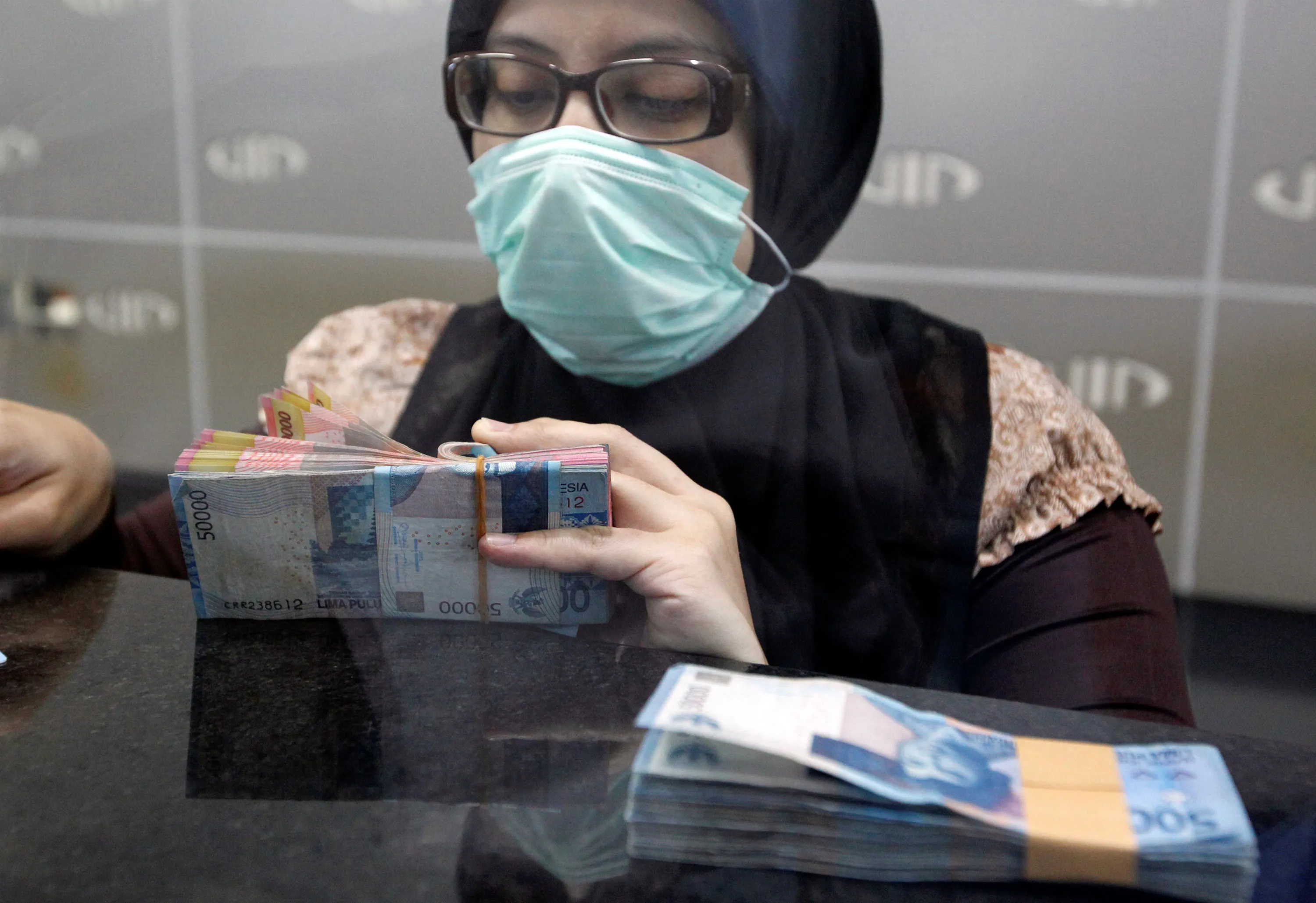 A teller in a money changer prepares Indonesian rupiah notes for a customer in Jakarta, Indonesia September 1, 2016. (Photo by Iqro Rinaldi/Reuters)