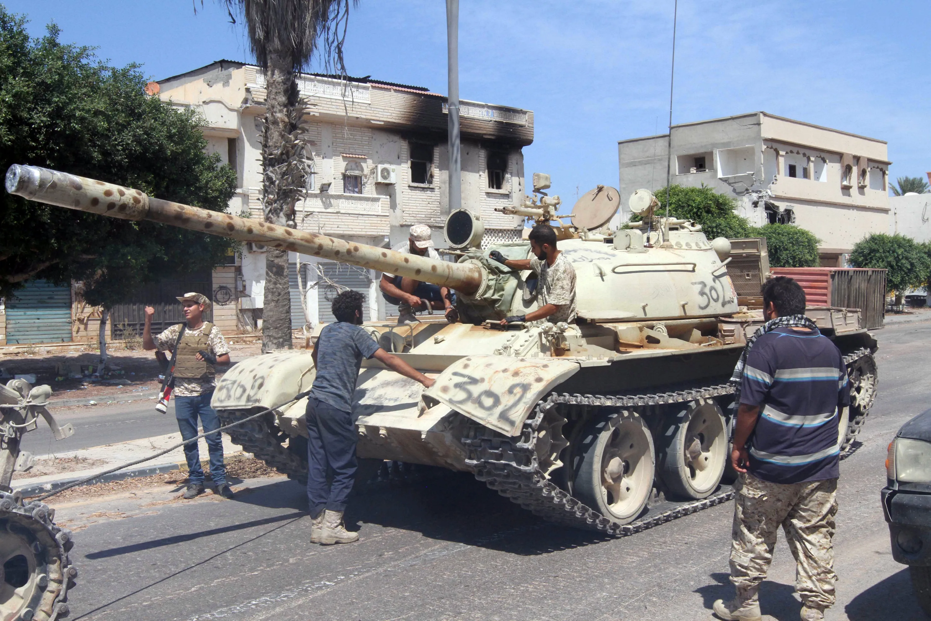 Members of Libyan forces allied with the U.N.-backed gather around a tank during a battle with Islamic State militants in Sirte, Libya September 6, 2016. (Photo by Hani Amara/Reuters)