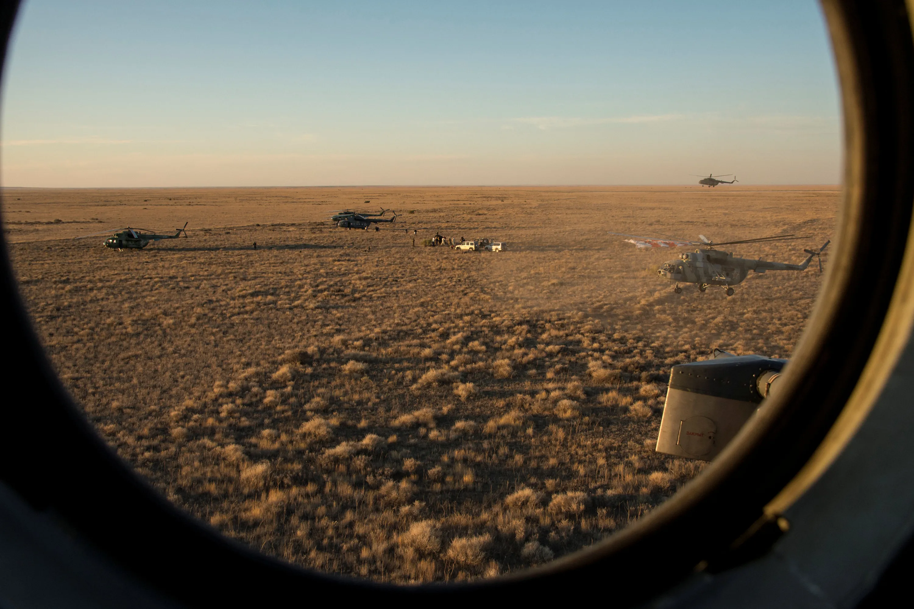 Search and rescue team approaches the Soyuz TMA-20M spacecraft capsule with the International Space Station (ISS) crew, comprised of Jeff Williams of the U.S. and Oleg Skripochka and Alexey Ovchinin of Russia, after its landing near the town of Zhezkazgan (Dzhezkazgan), Kazakhstan, September 7, 2016. (Photo by Bill Ingalls/Reuters/NASA)