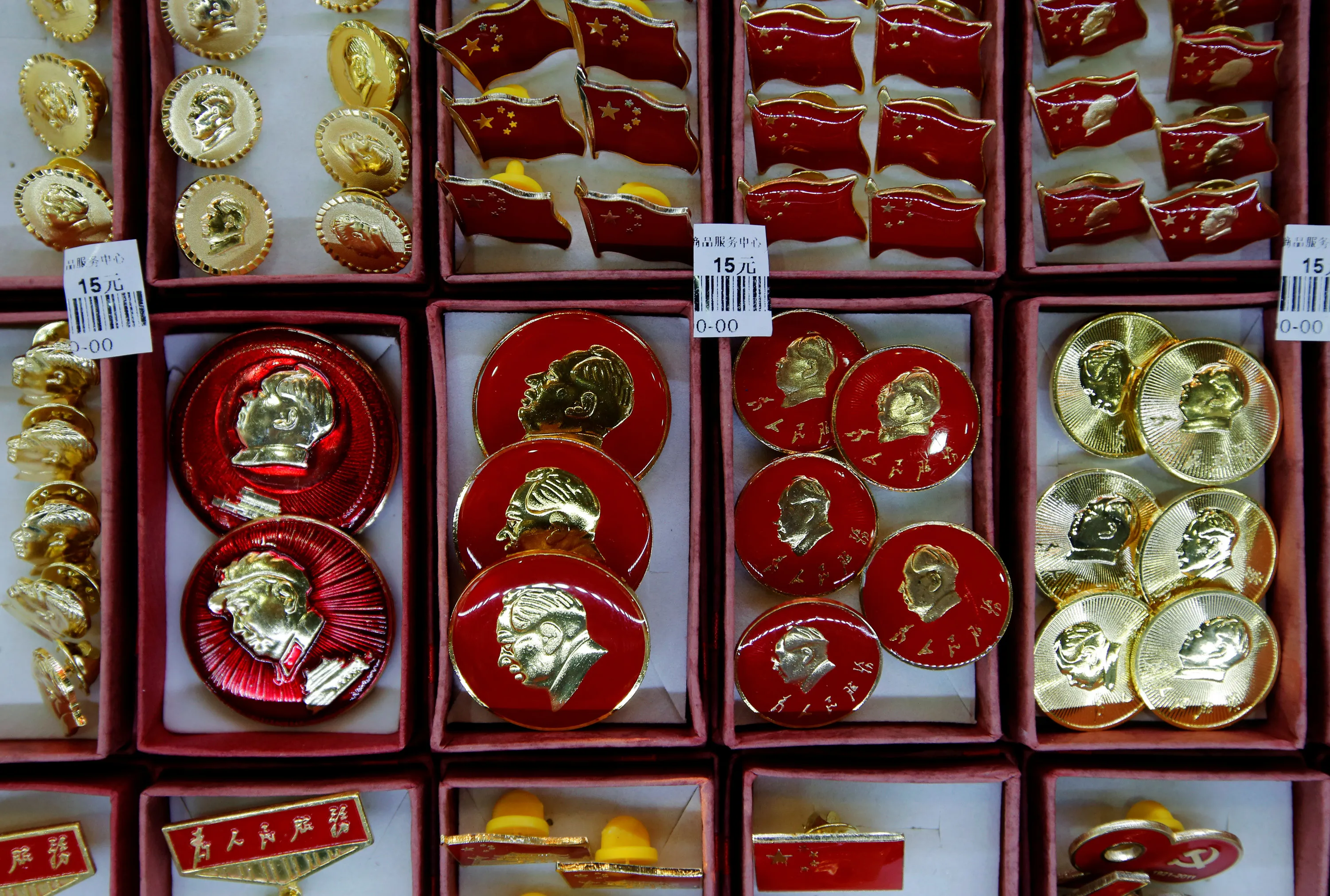 Pins bearing images of China's late Chairman Mao Zedong are displayed at a souvenir shop in Beijing, November 25, 2013. (Photo by Kim Kyung-Hoon/Reuters)