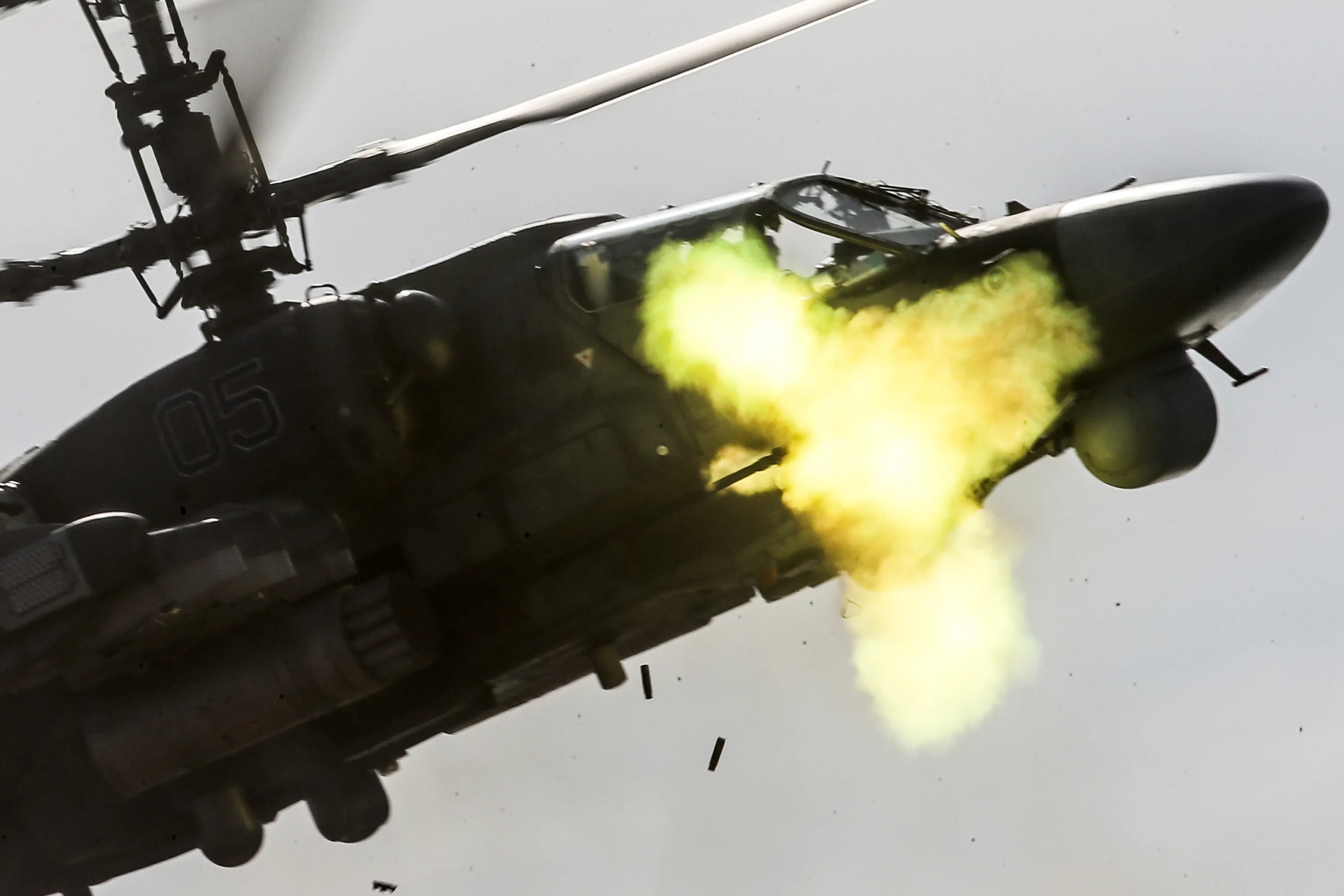 A Kamov Ka 52 Alligator helicopter during the Caucasus 2016 strategic drills at Opuk range of Russia's Southern Military District. (Photo by Sergei Savostyanov/TASS via Getty Images)