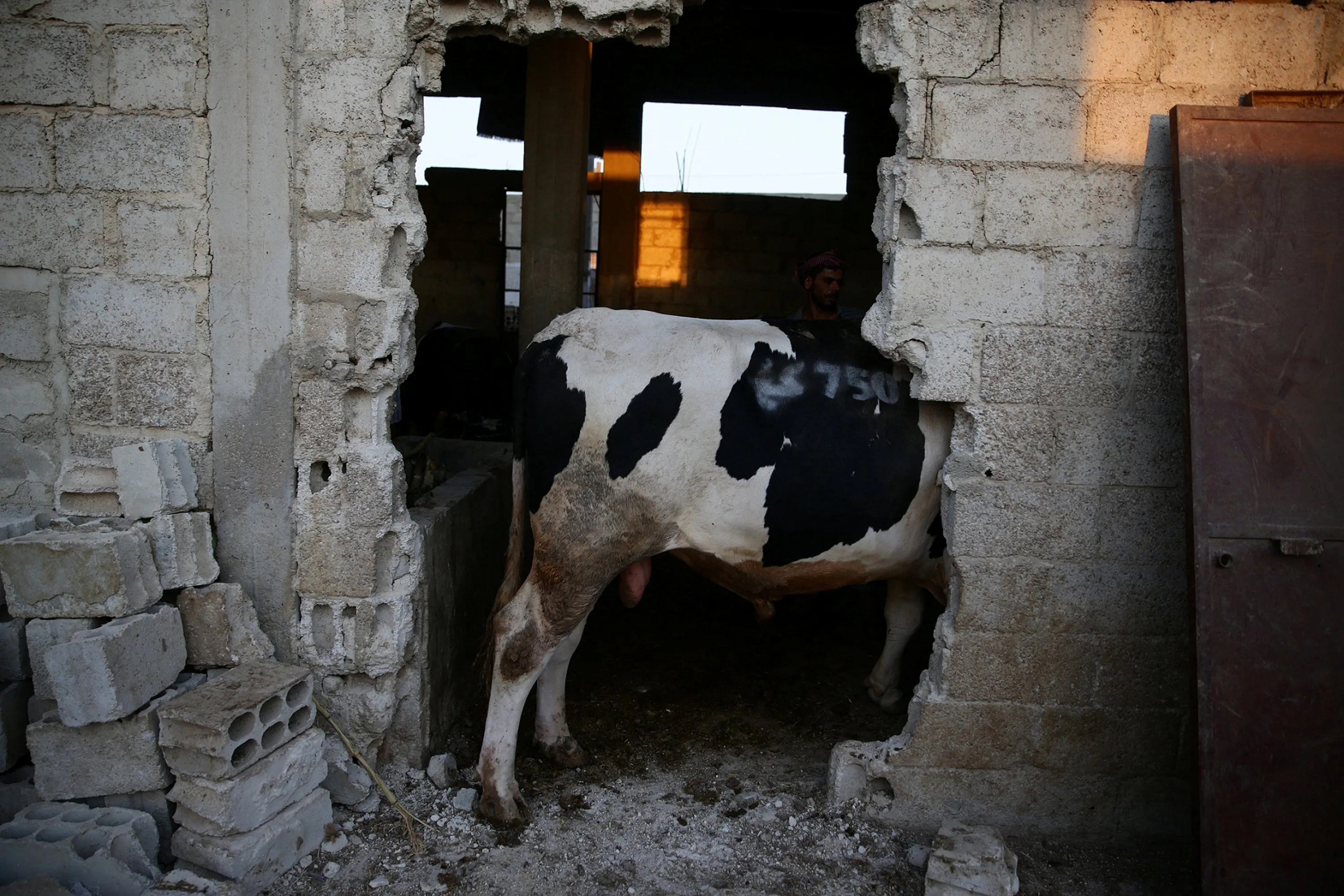 A man stands next to a cow seen through a hole in the wall prior to Eid al-Adha celebrations in the rebel held Douma neighbourhood of Damascus, Syria September 11, 2016. (Photo by Bassam Khabieh/Reuters)