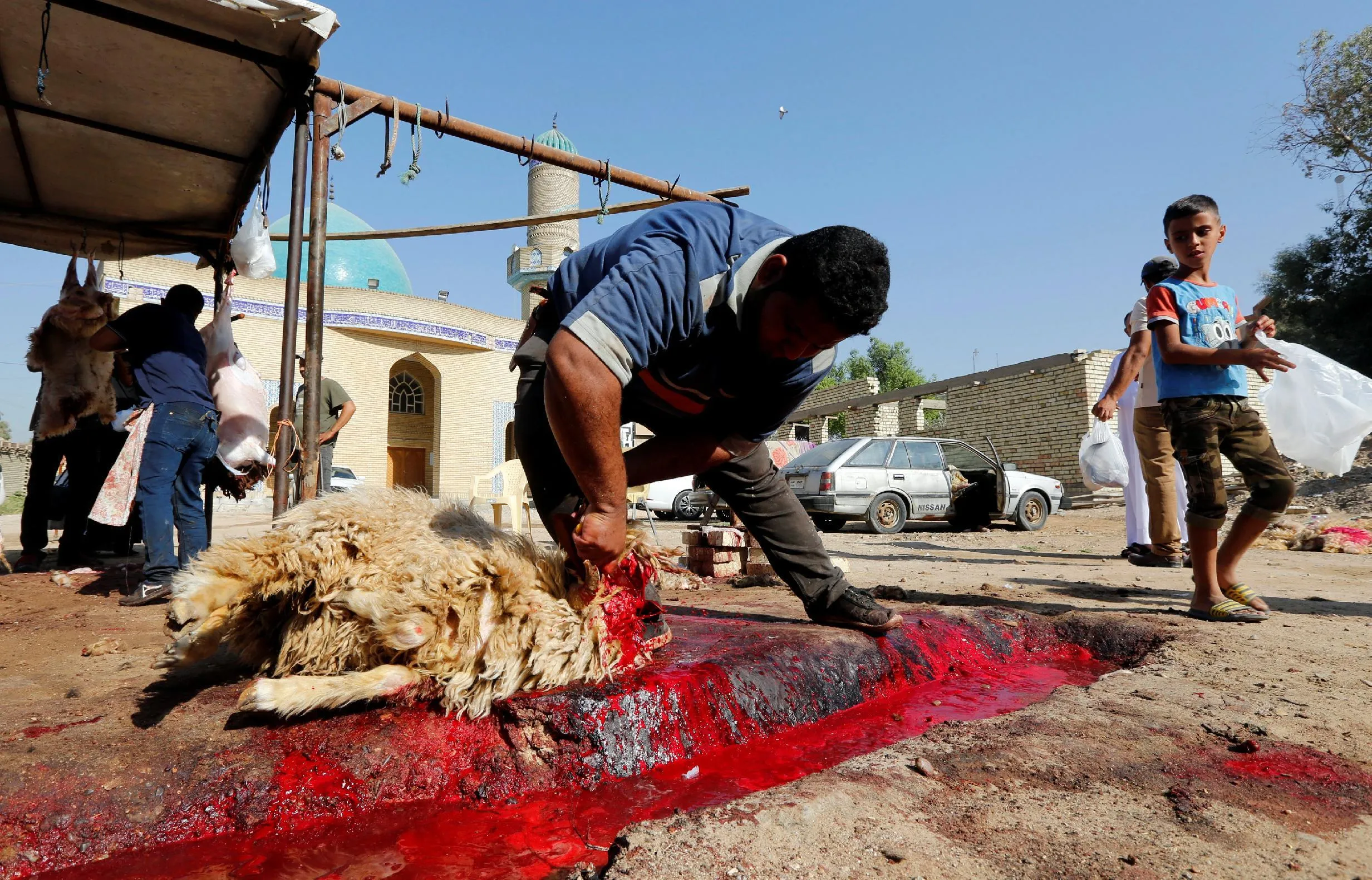 Men slaughter sheep during the Muslim festival of Eid al-Adha in Baghdad, Iraq September 12, 2016. (Photo by Ahmed Saad/Reuters)