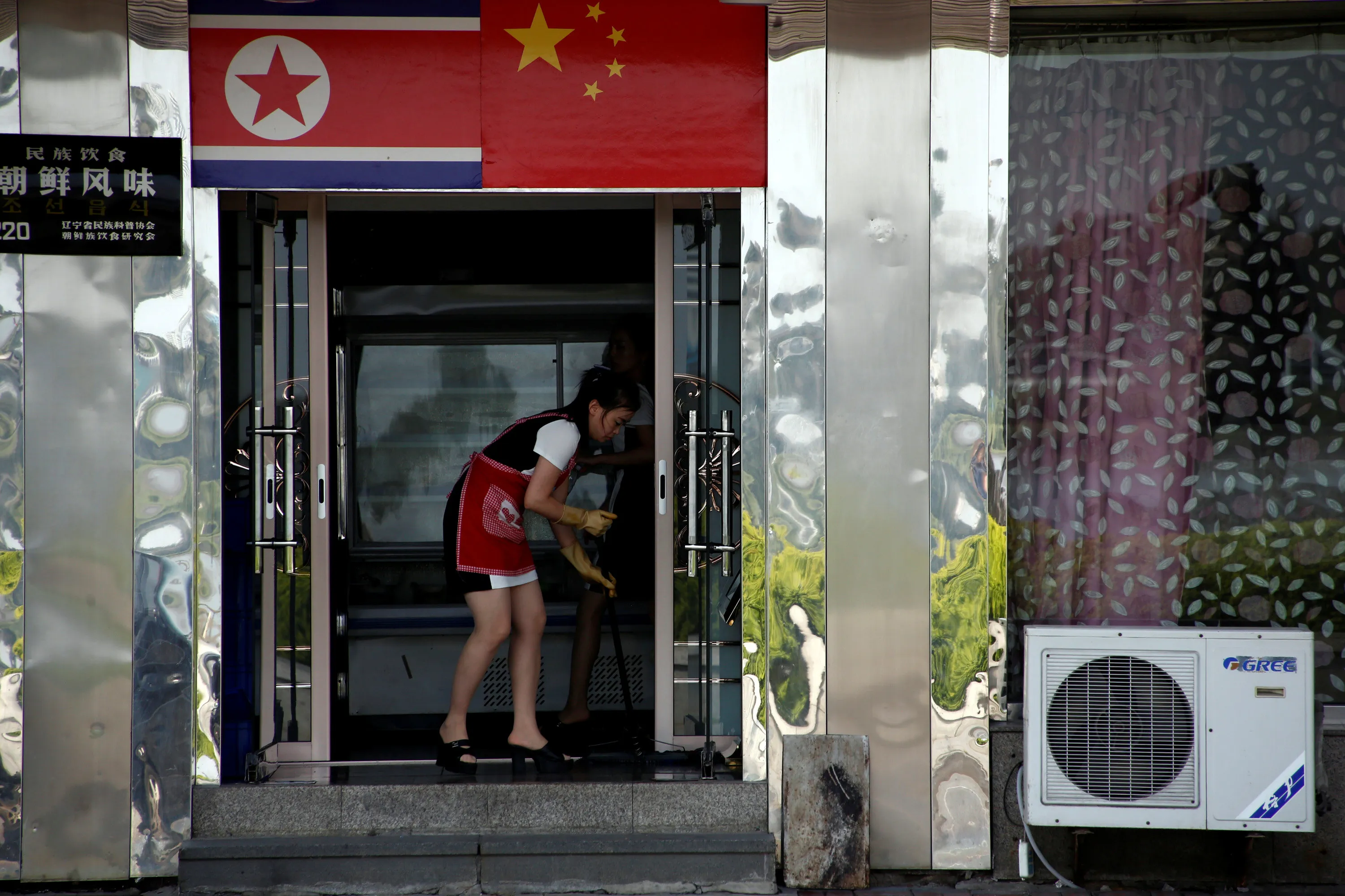 A North Korean waitress cleans the floor of a North Korean restaurant in Dandong, Liaoning province, China, September 12, 2016. (Photo by Thomas Peter/Reuters)