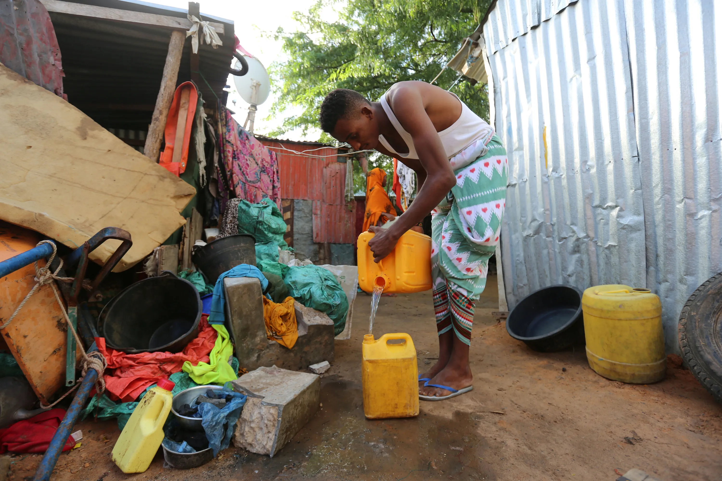 Newly married Mohamed Noor prepares to take a shower after returning from work, in Mogadishu's Rajo camp, Somalia August 30, 2016. (Photo by Feisal Omar/Reuters)