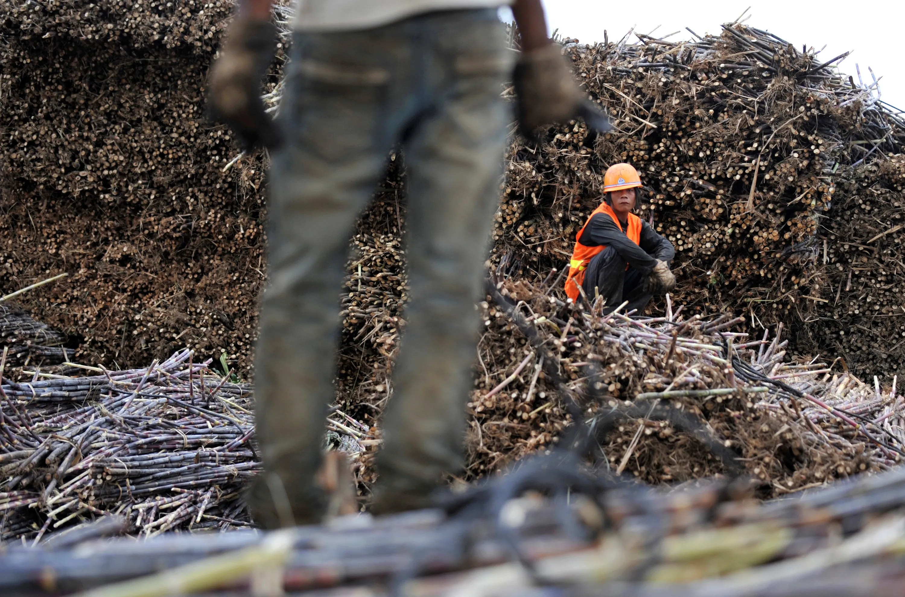 Labourers work on piles of sugarcanes at a sugar refinery in Menghai county, Yunnan province December 6, 2011. (Photo by Wong Campion/Reuters)