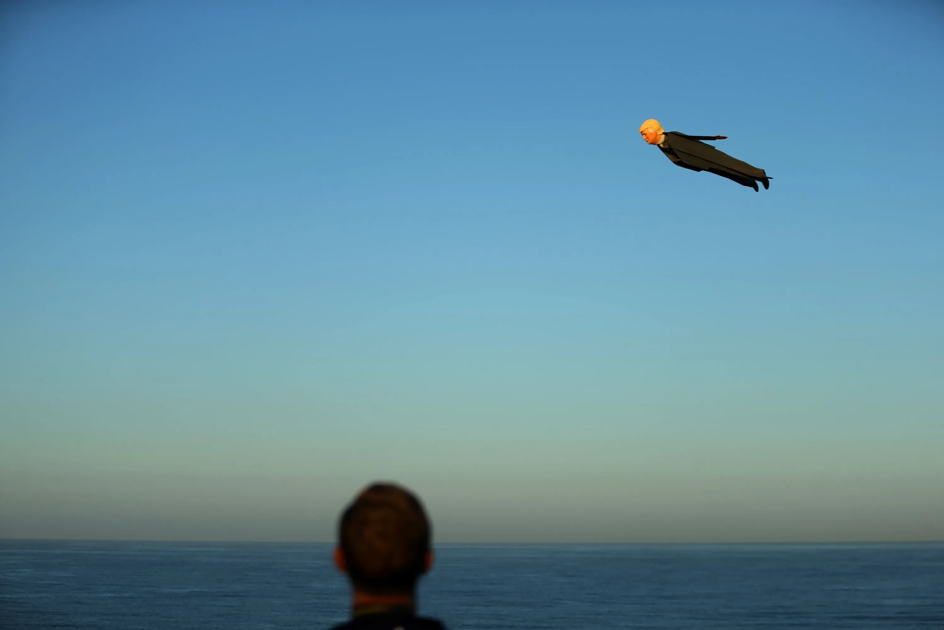 Remote control plane builder Otto Diefffenbach III flies his plane resembling U.S. Presidential candidate Donald Trump in Carlsbad, California, U.S. September 15, 2016. (Photo by Mike Blake/Reuters)