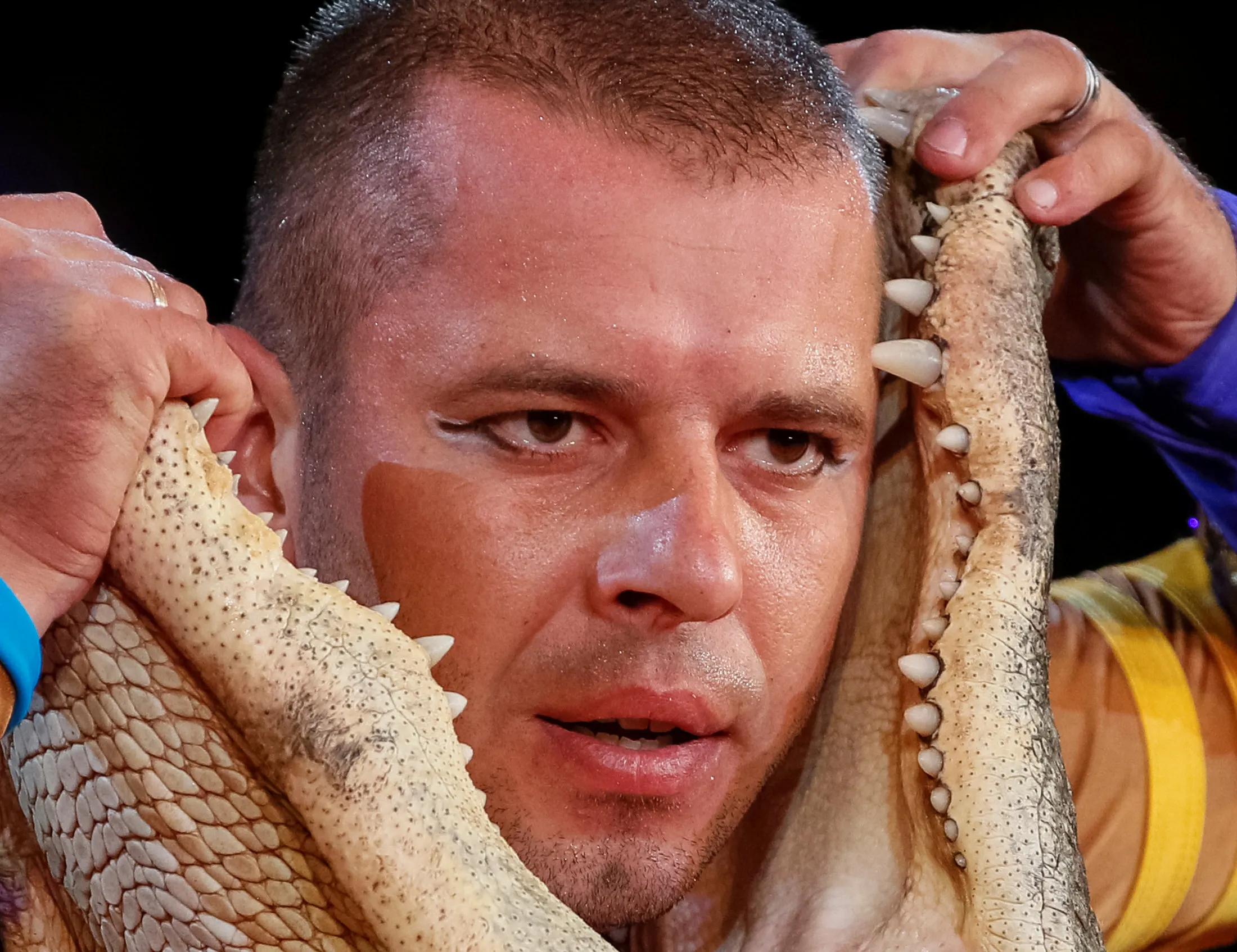 A crocodile and its tamer perform during the presentation of the new show “The extreme arena” at the National Circus in Kiev, Ukraine, September 15, 2016. (Photo by Gleb Garanich/Reuters)
