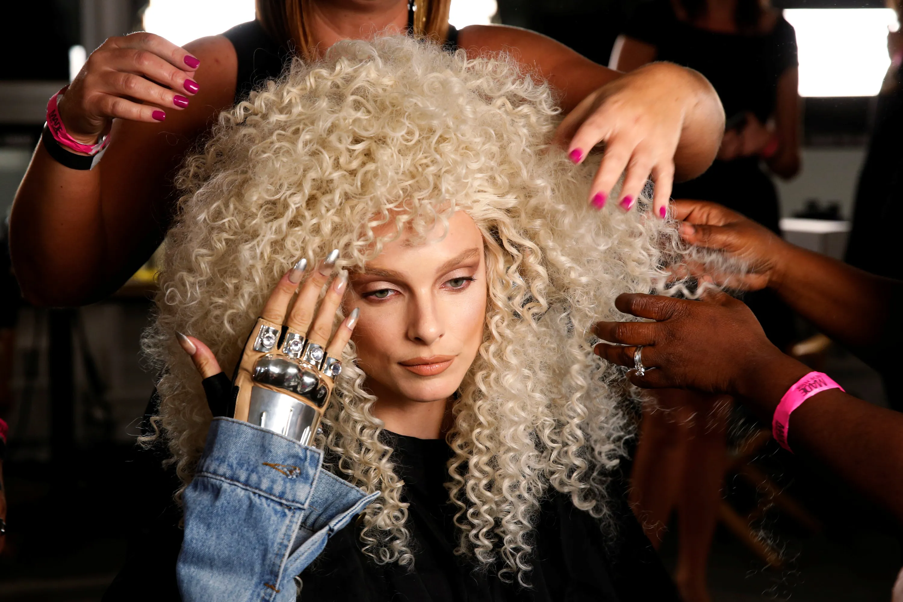 A model has a wig prepared backstage before The Blonds Spring/Summer 2017 collection during New York Fashion Week in the Manhattan borough of New York, U.S., September 11, 2016. (Photo by Lucas Jackson/Reuters)