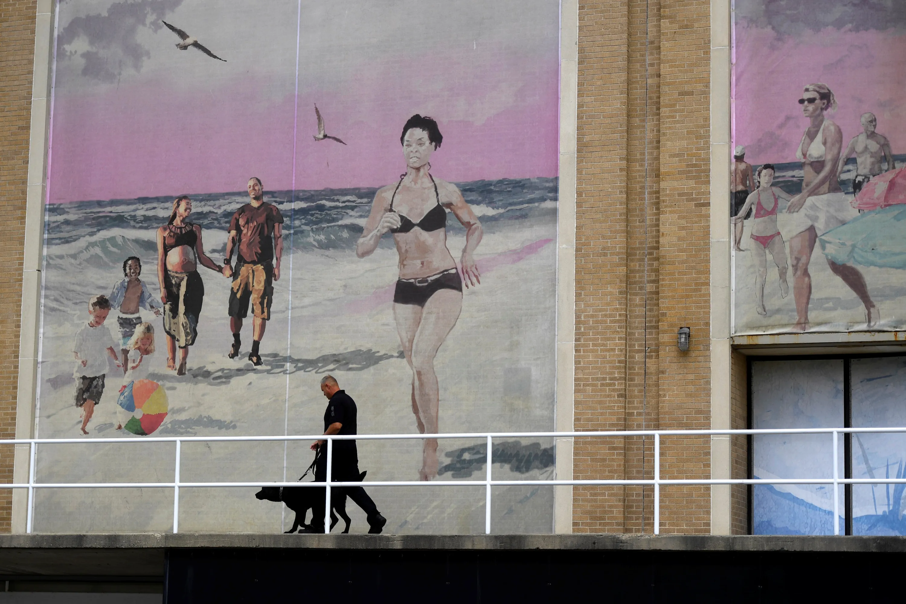 A police officer and dog patrol outside of Boardwalk Hall, the venue for the 96th Miss America Pageant that takes place tonight in Atlantic City, New Jersey September 11, 2016. (Photo by Mark Makela/Reuters)