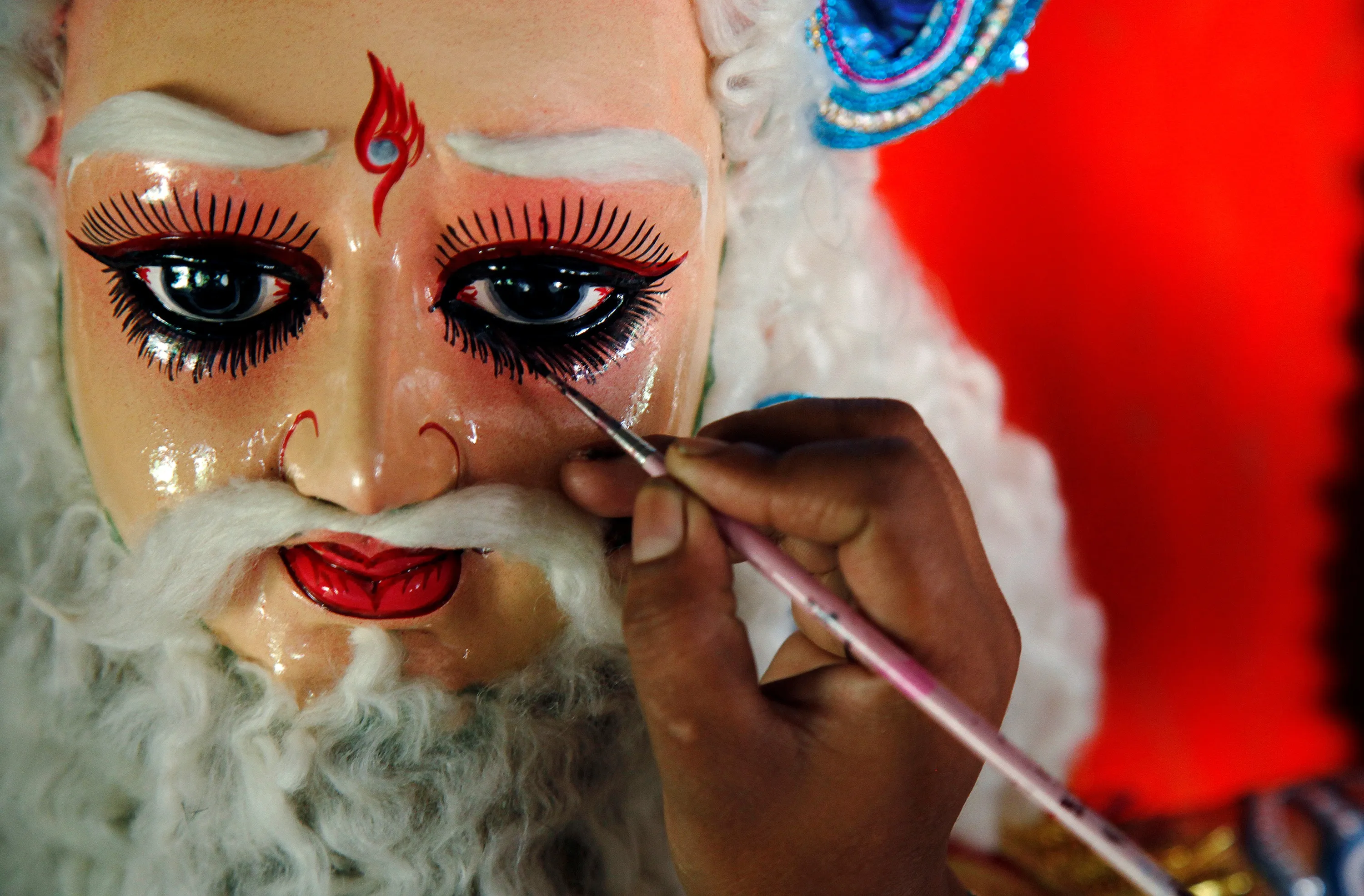 An artisan makes the finishing touches to an idol of Lord Vishwakarma, the Hindu deity of architecture and machinery, inside a workshop ahead of the Vishwakarma festival in Chandigarh, India September 16, 2016. (Photo by Ajay Verma/Reuters)