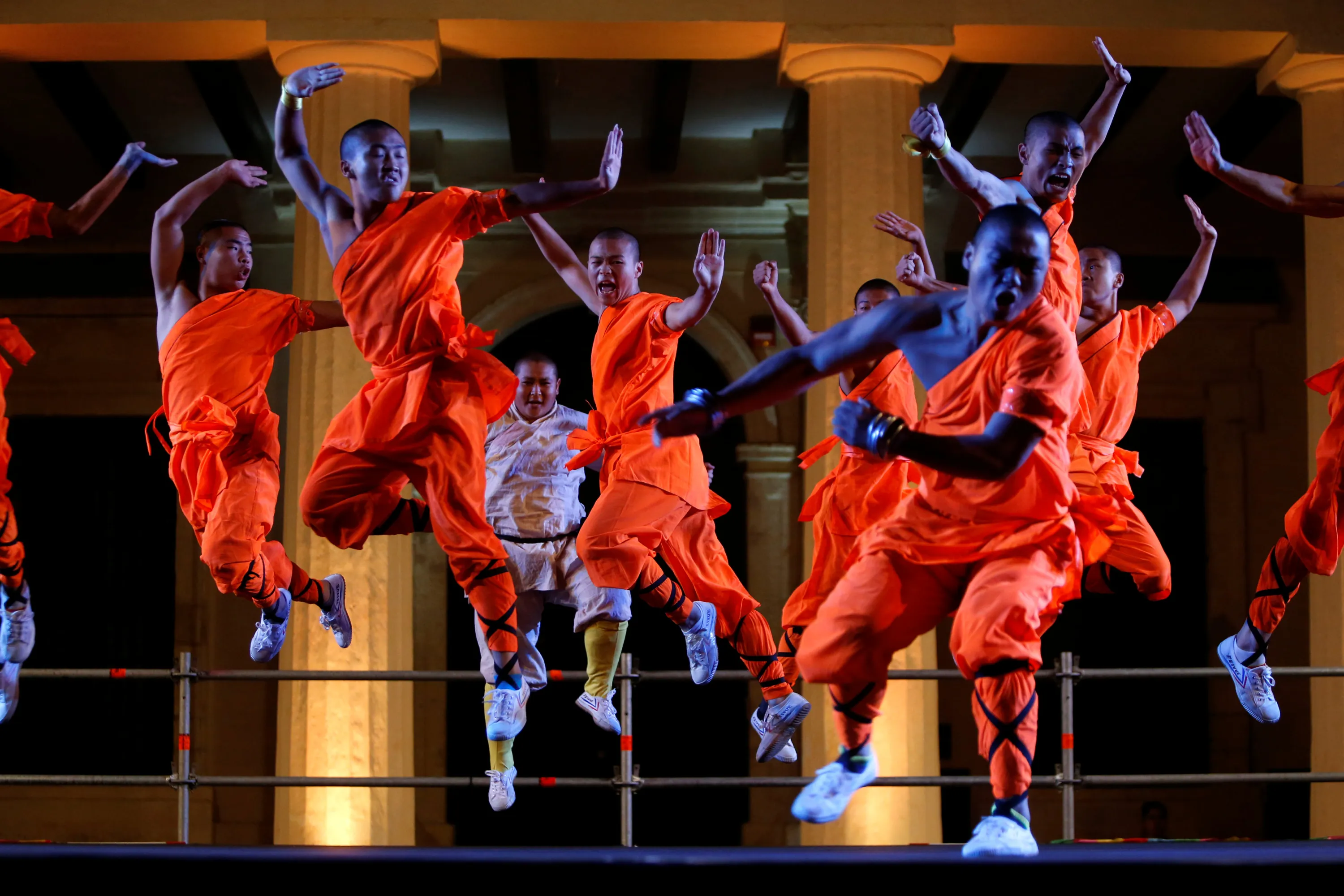 Shaolin monks of the Dengfeng Zhongyue Shaolin Boxing Culture Troupe from Henan Province in China perform in Valletta, Malta, September 17, 2016. (Photo by Darrin Zammit Lupi/Reuters)