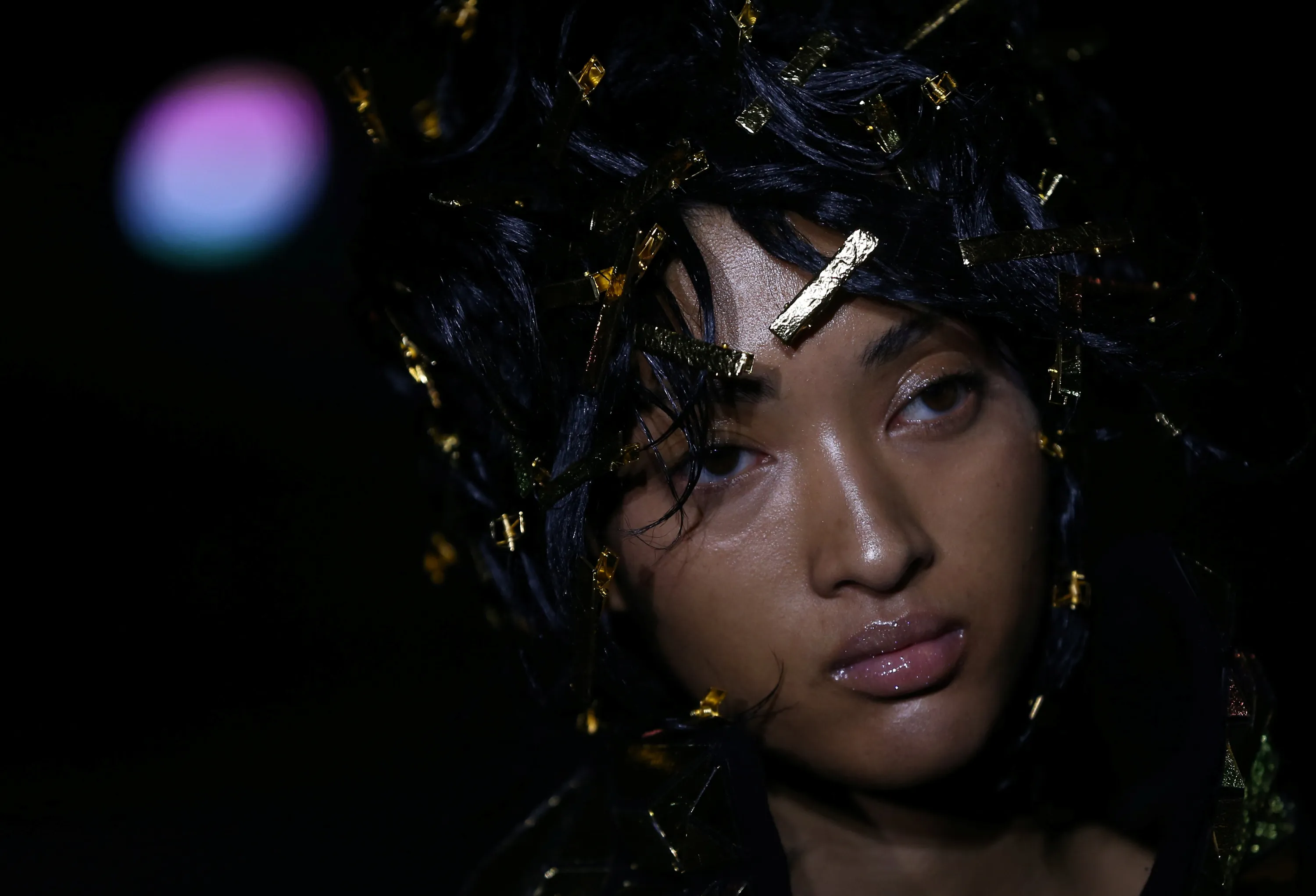A model presents a creation at the Gareth Pugh catwalk show during London Fashion Week Spring/Summer 2017 in London, Britain September 17, 2016. (Photo by Neil Hall/Reuters)