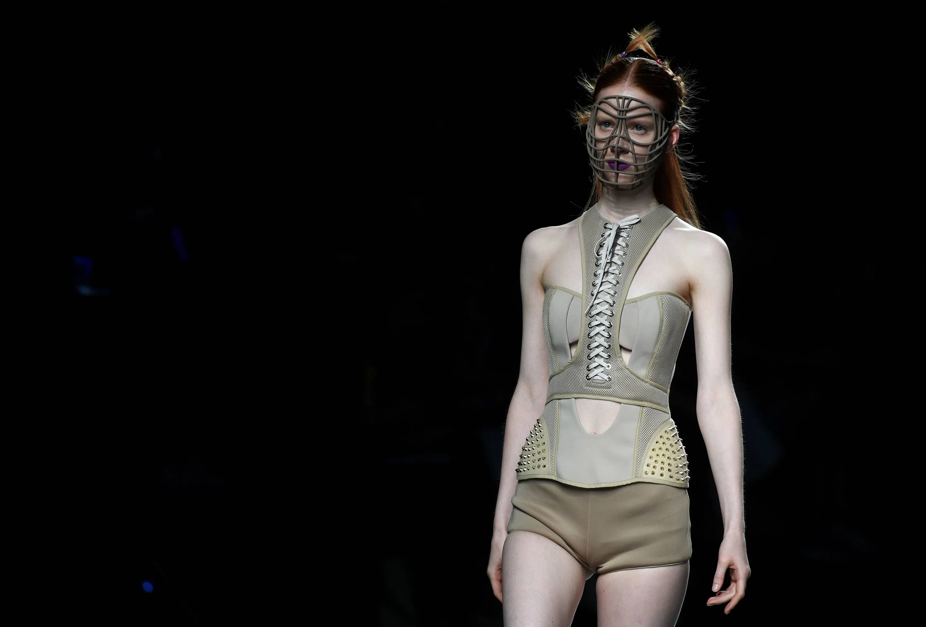 A model presents Maya Hansen's Spring/Summer 2017 collection during the Madrid Fashion Week in Madrid on September 18, 2016. (Photo by Gerard Julien/AFP Photo)