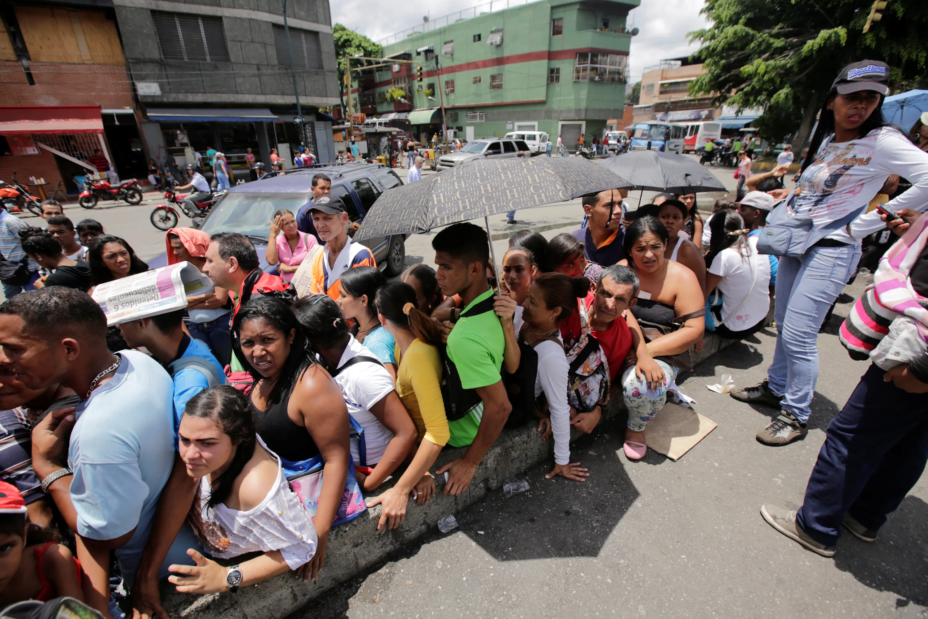 People wait in a queue to buy staple items and basic food at a sidewalk near a supermarket in Caracas, Venezuela September 14, 2016. (Photo by Henry Romero/Reuters)