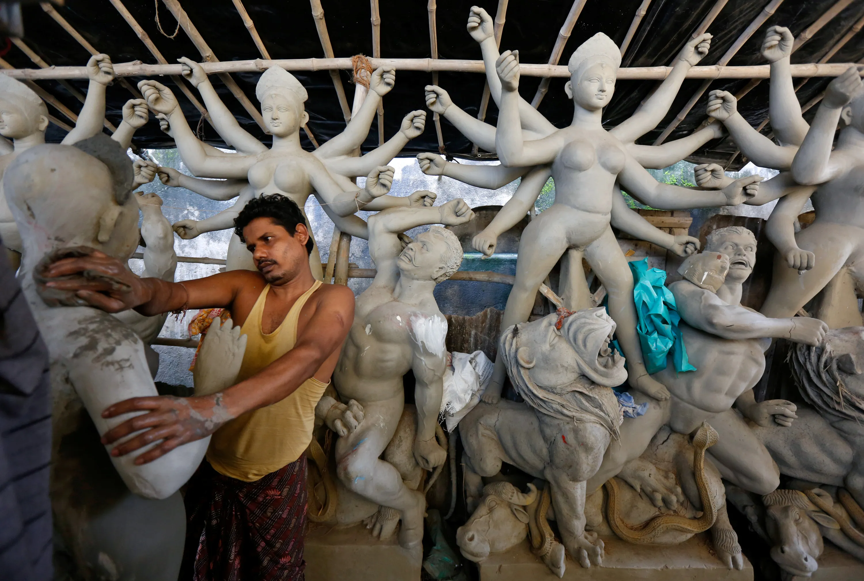 An artisan works on an idol of Hindu goddess Durga at a workshop ahead of the Durga Puja festival in Kolkata, India, September 20, 2016. (Photo by Rupak De Chowdhuri/Reuters)