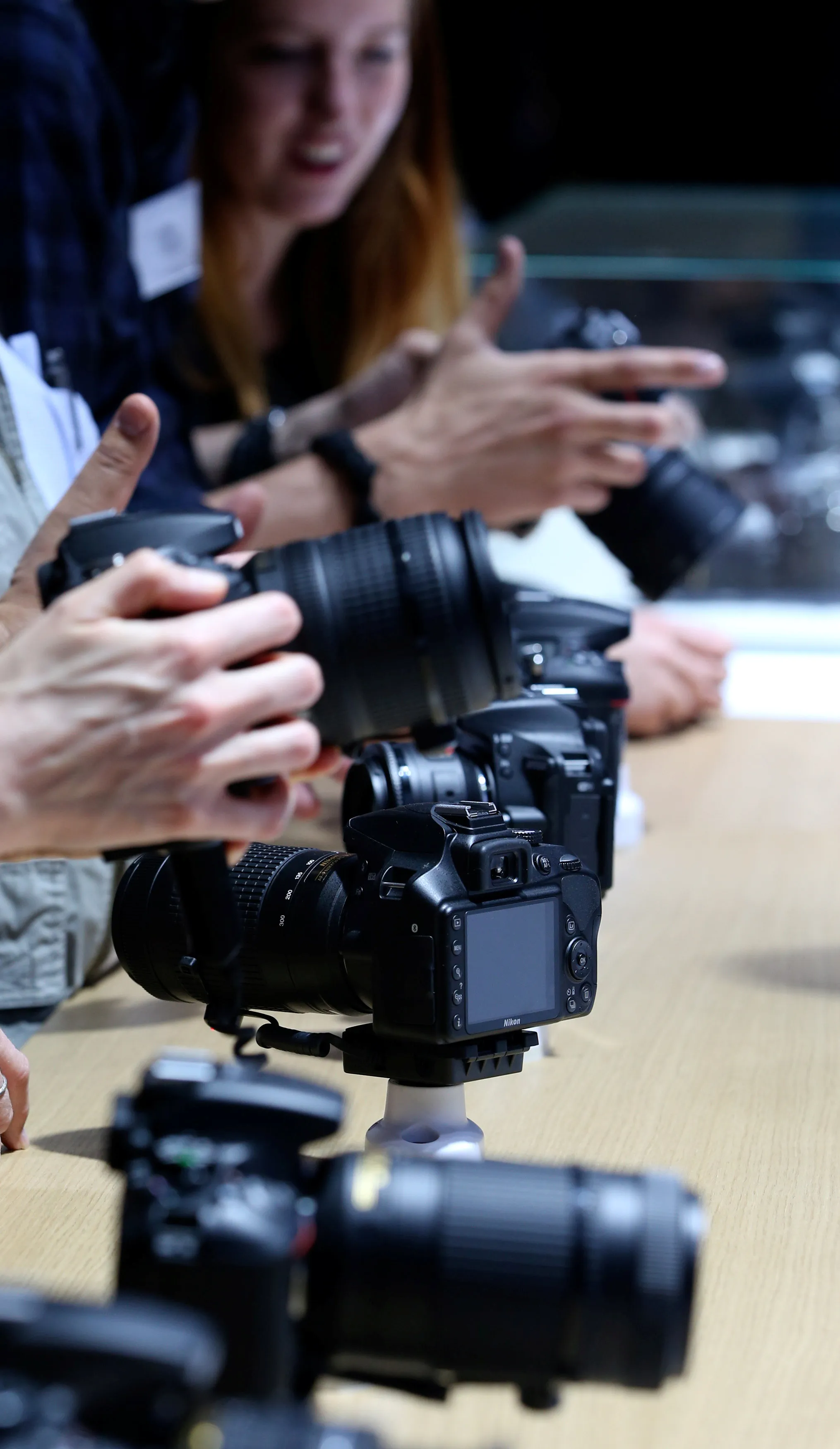 Visitors check out DSLR cameras at the Nikon booth on the Photokina, the world's largest fair for imaging in Cologne, Germany, September 20, 2016. (Photo by Fabrizio Bensch/Reuters)