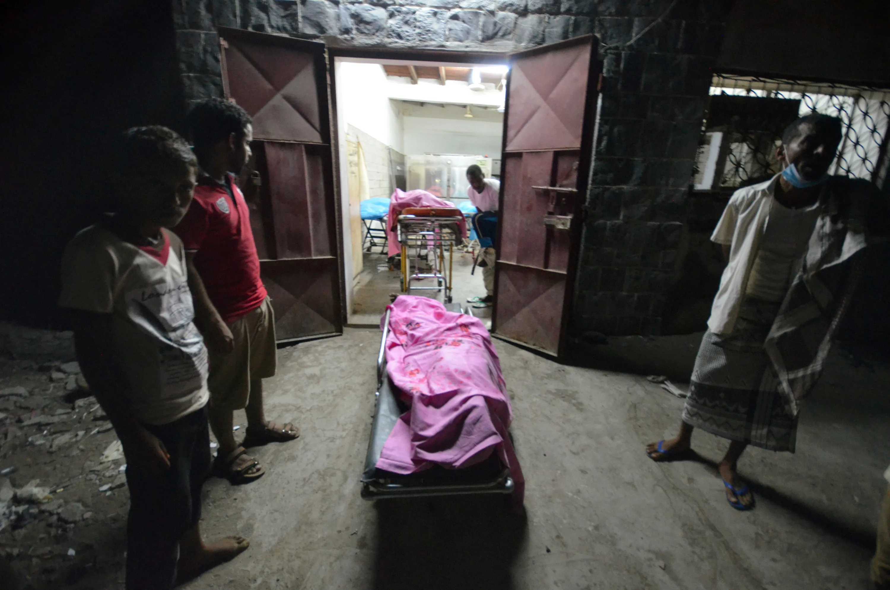 People wait outside a hospital morgue near the body of a victim of a Saudi-led air strike in the Red Sea port city of Hodeidah, Yemen September 21, 2016. (Photo by Abduljabbar Zeyad/Reuters)