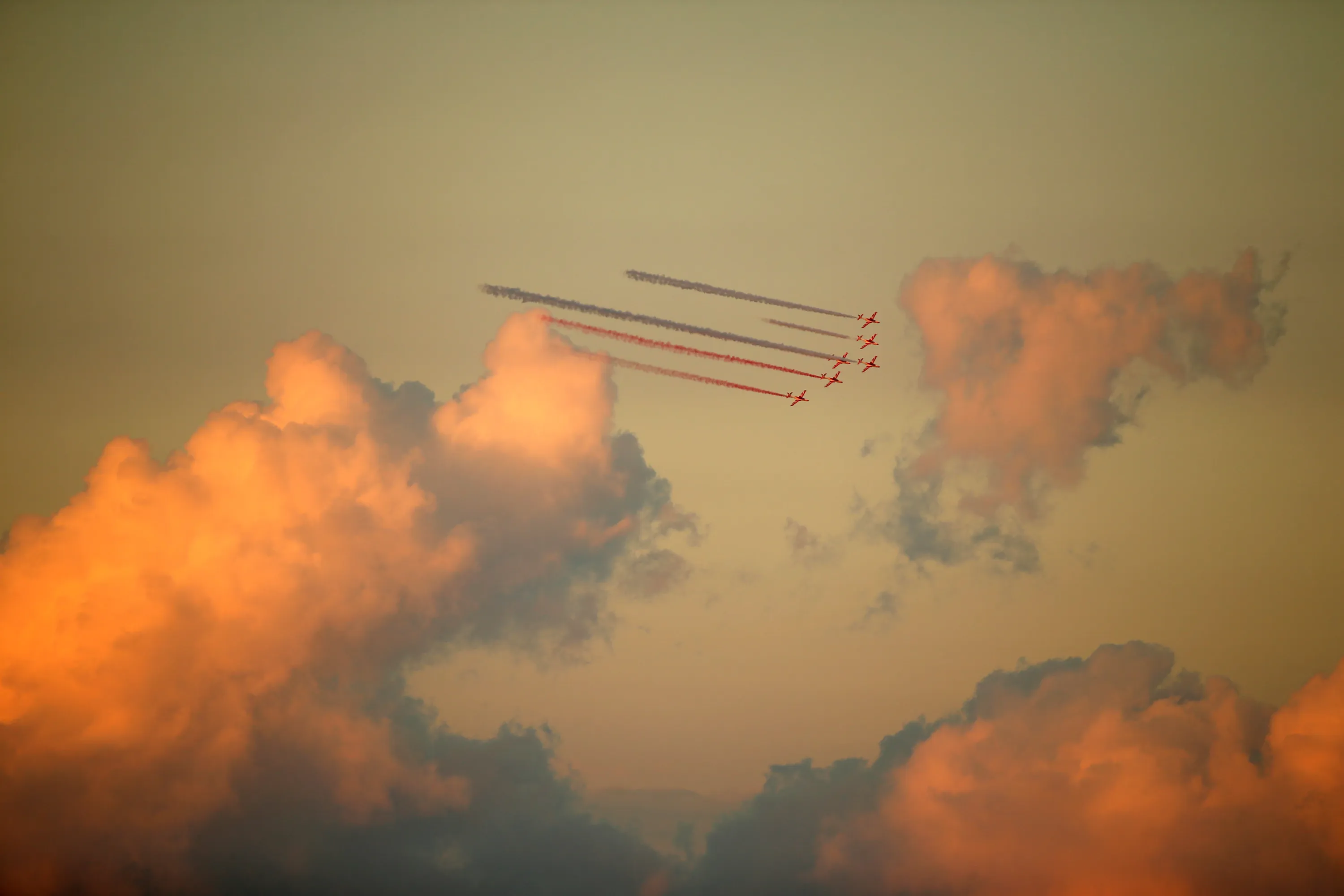 Team Iskry of the Polish Air Force fly their TS-11 Iskra jet trainer aircraft during the Malta International Airshow off SmartCity Malta, outside Valletta, Malta, September 24, 2016. (Photo by Darrin Zammit Lupi/Reuters)