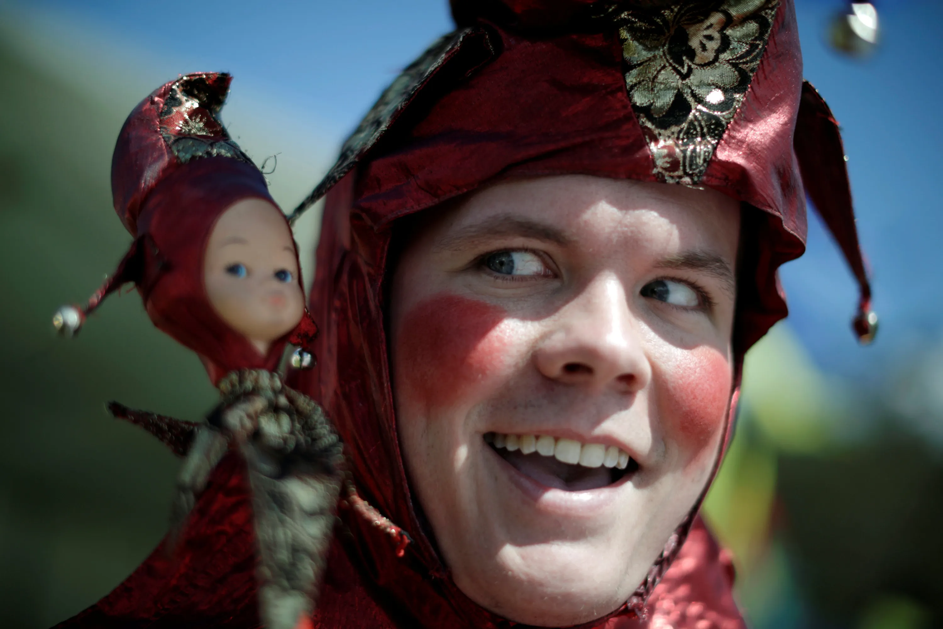 Jamie Oberg clowns for the camera as a court jester at the St Ives Medieval Fair in Sydney, one of the largest of its kind in Australia, September 24, 2016. (Photo by Jason Reed/Reuters)