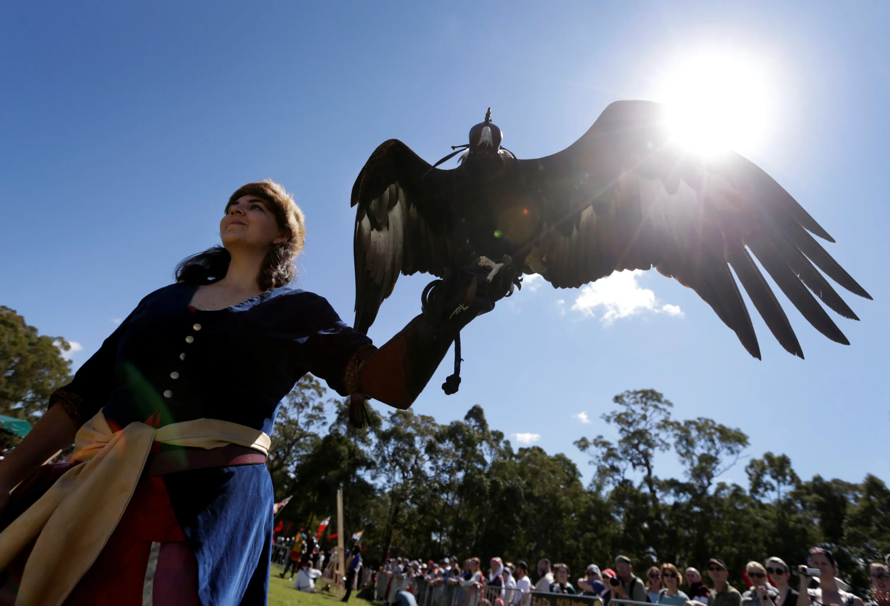An Australian Wedge Tailed Eagle is put on display as part of the birds of prey exhibit at the St Ives Medieval Fair in Sydney, one of the largest of its kind in Australia, September 24, 2016. (Photo by Jason Reed/Reuters)
