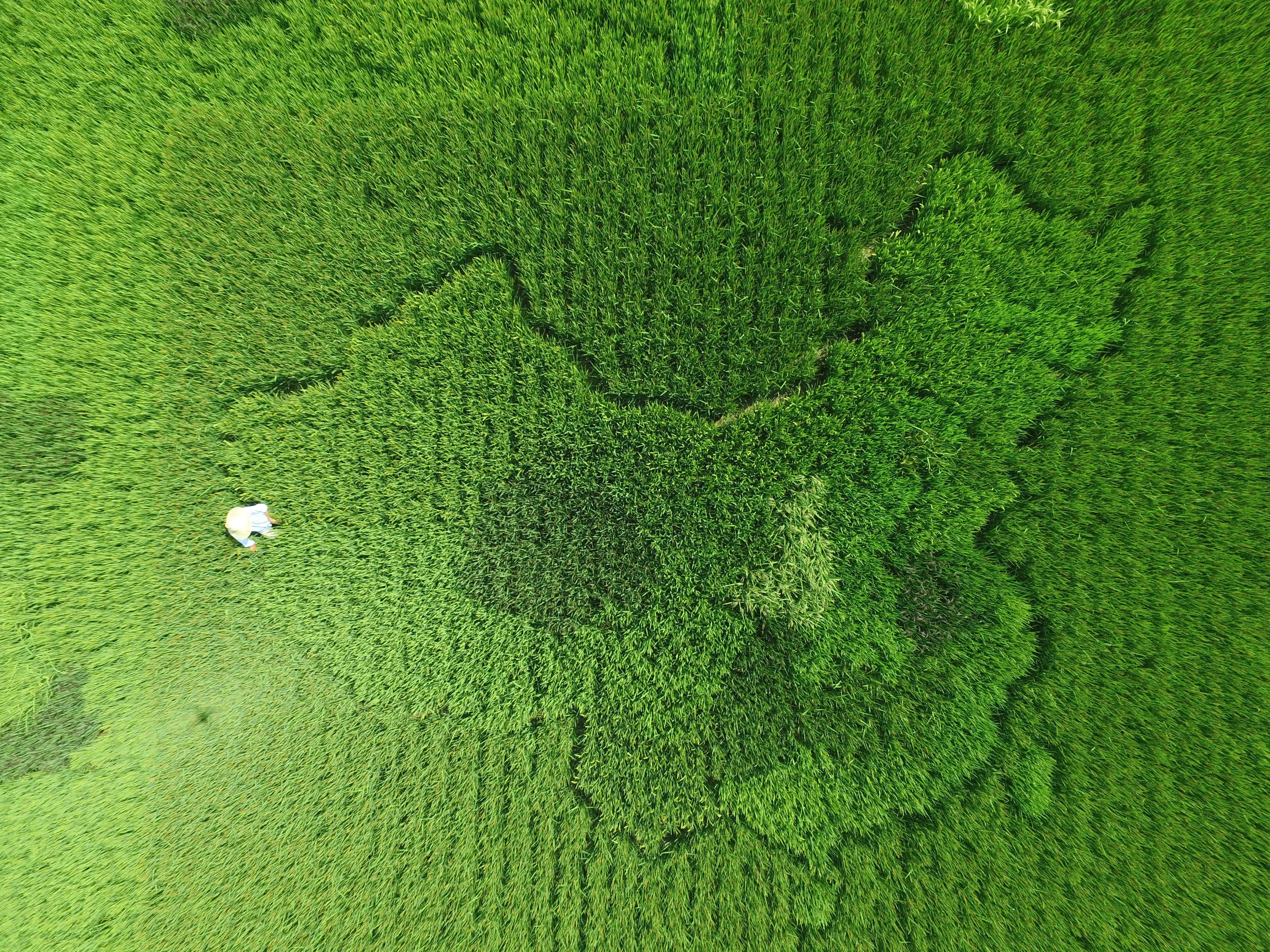 A man works in a rice field where rice crop is planted in a shape which looks like a map of China, ahead of China's National Day, in Shanghai, China, September 25, 2016. (Photo by Reuters/Stringer)