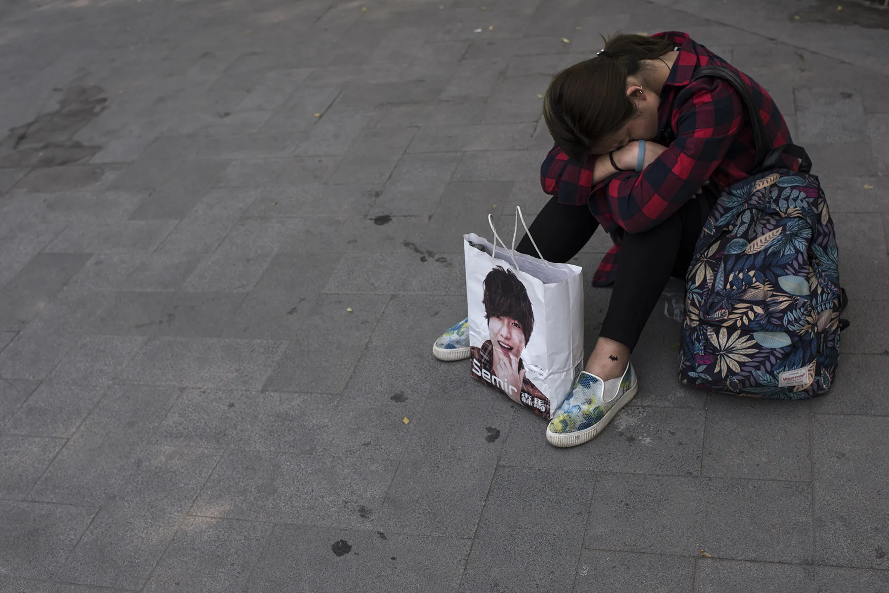 A woman takes a rest in a square near Beijing's famous Drum Tower on May 19, 2016. The sheer scale of the city and population can be exhausting. (Photo by Michael Robinson Chavez/The Washington Post)