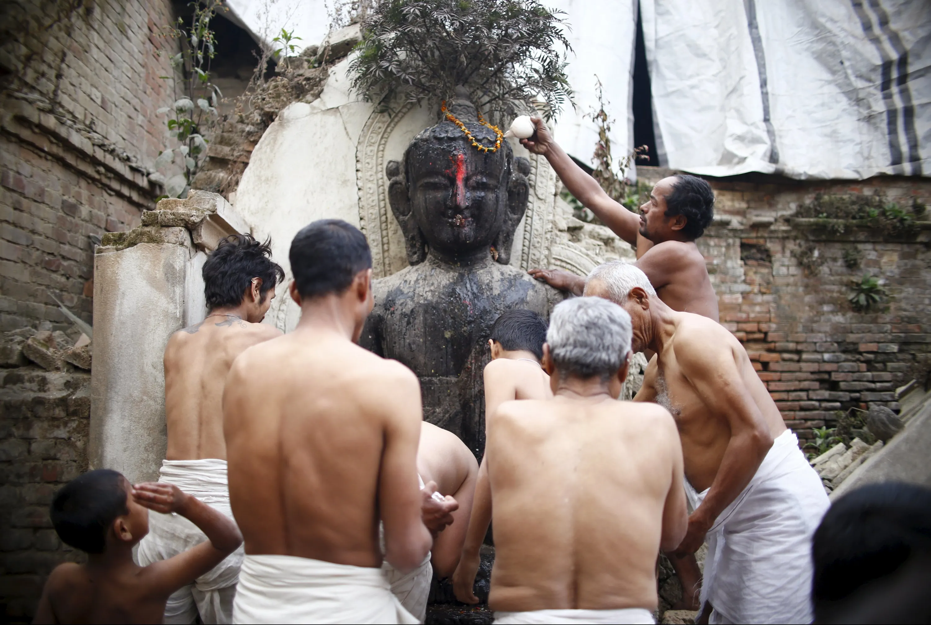 Devotees offer prayers at the statue of Lord Buddha during a month-long Swasthani Brata Katha festival in Bhaktapur, Nepal, January 27, 2016. (Photo by Navesh Chitrakar/Reuters)