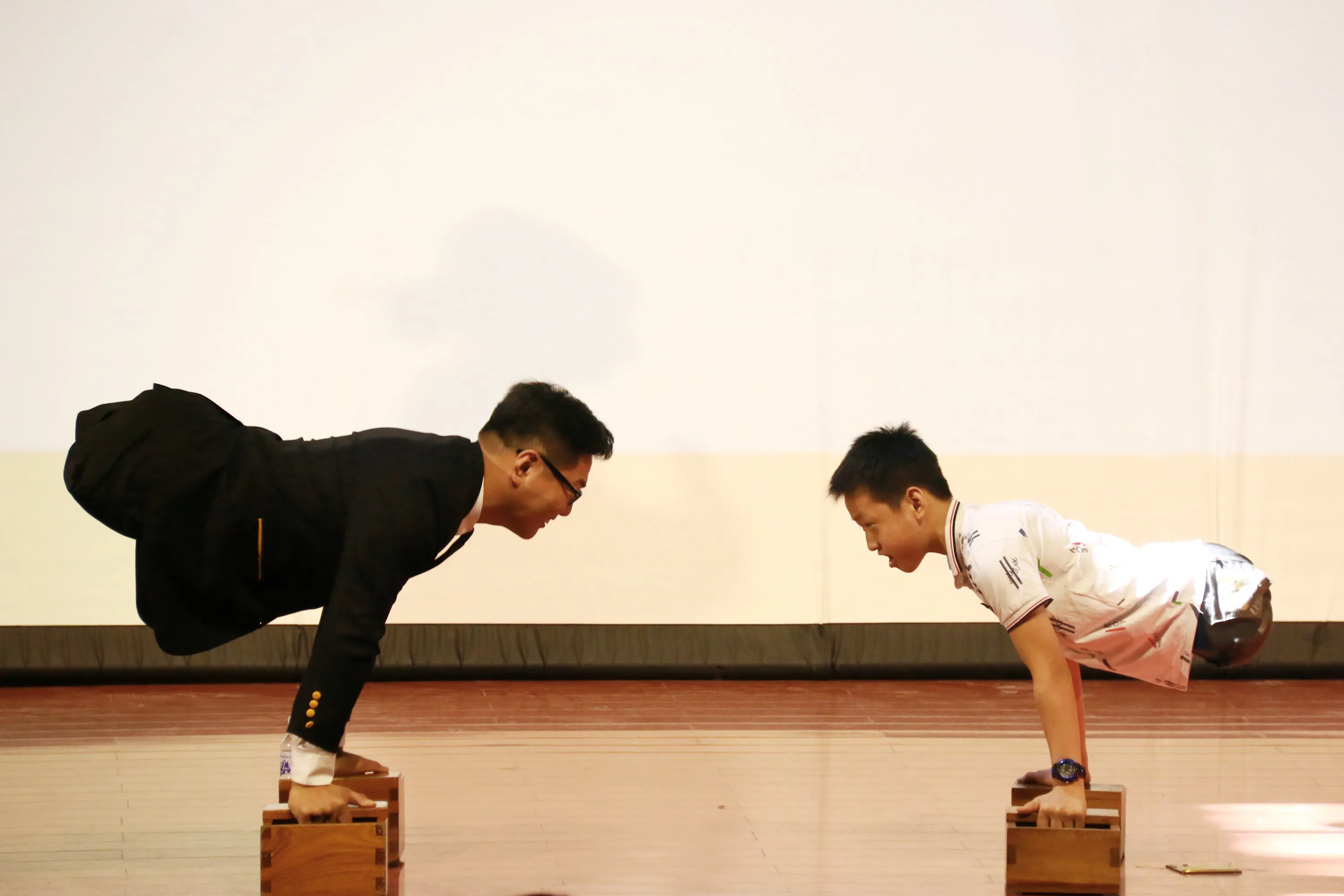 Gao Zhiyu (R) and Chen Zhou, who lost both of their legs in accidents, perform as they give a speech at a university in Qingdao, Shandong province, China, September 11, 2016. (Photo by Reuters/Stringer)