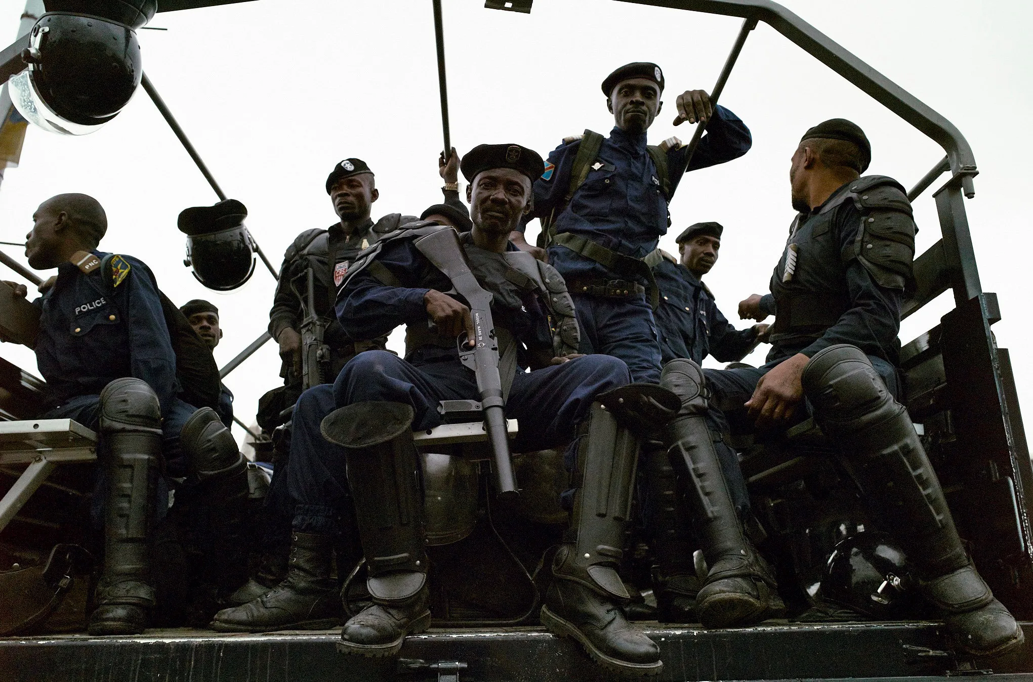 Congolese police patrol in their truck along an intersection near Echangeur de Limete as opposition activists march to press President Joseph Kabila to step down in the Democratic Republic of Congo's capital Kinshasa, September 19, 2016. (Photo by Reuters/Stringer)
