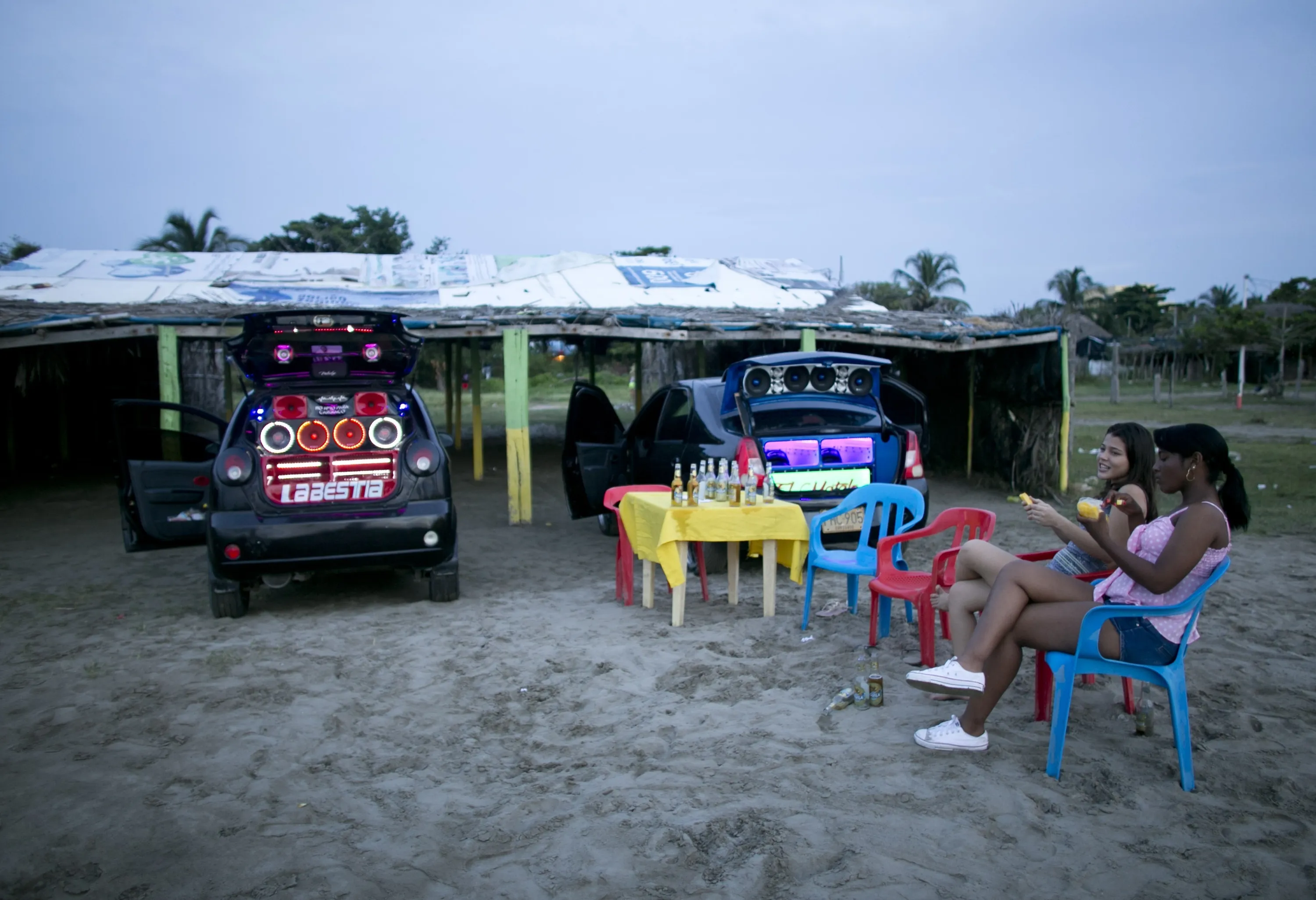 Two girls enjoy and listen music from the stereo of two car at the beach in Cartagena, Colombia, Sunday, September 25, 2016. Colombia's government and the Revolutionary Armed Forces of Colombia, FARC, will sign a peace agreement to end over 50 years of conflict, in Cartagena, on Monday. (Photo by Ariana Cubillos/AP Photo)