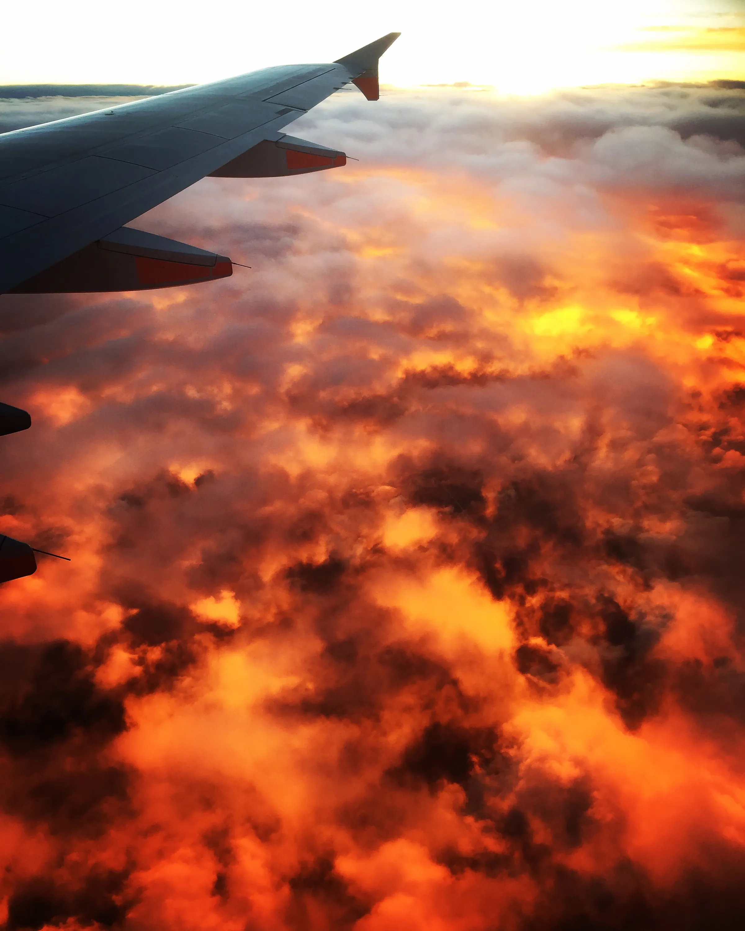 Amazing sunset over Melbourne, Australia on September 24, 2016. A plane passenger captured this out-of-this-world image of what looks like the sky on fire above an Australian city. The stunning photograph was taken over Melbourne, Australia, last week and shows the wing of the plane and what looks like a volcanic scene erupting below. In fact the fire is just an effect created by a sunset which has turned the clouds and sky below the aircraft into a molten shimmering sea. Penny Bowman, from Melbourne, Victoria, took the amazing photograph. (Photo by Penny Bowman/Caters News)