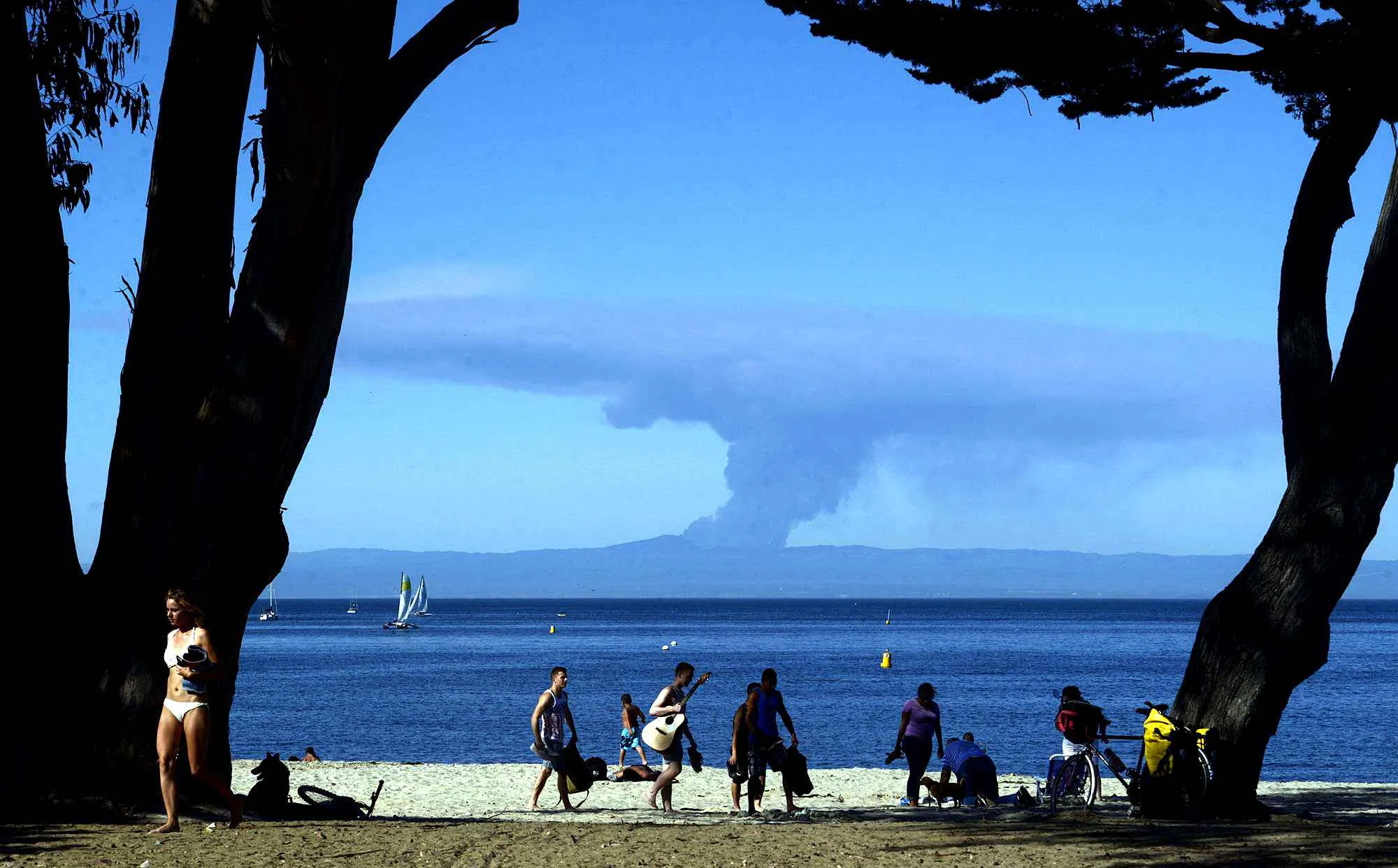 Smoke from the Loma Fire on Loma Prieta Mountain in the Santa Cruz Mountains is visible from Window on the Bay Park in Monterey, Calif., on Monday, September 26, 2016. (Photo by David Royal/The Monterey County Herald via AP Photo)