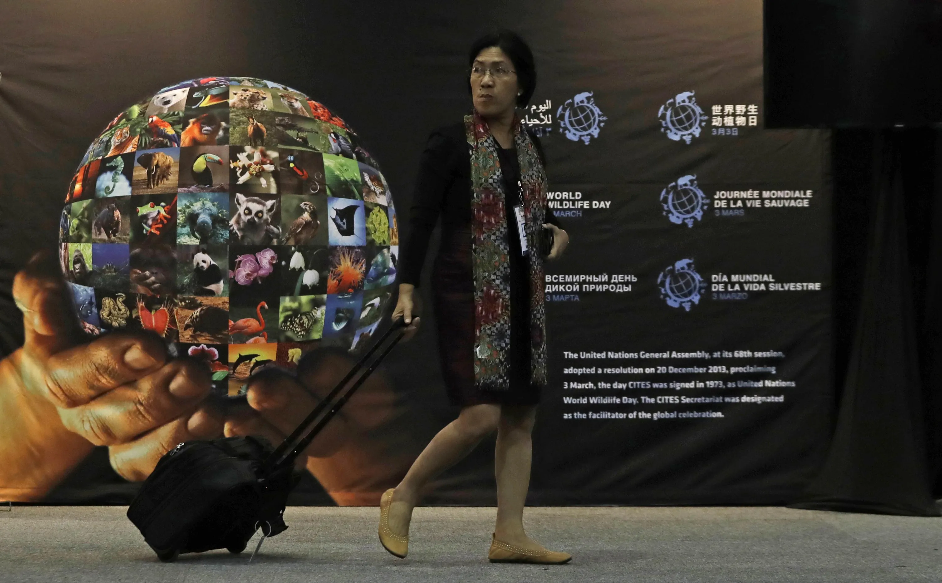 A delegate walks past a “UN World Wildlife Day” poster at the Convention on International Trade in Endangered Species of Wild Fauna and Flora, (CITES) in Johannesburg, South Africa, Tuesday September 27, 2016. The 12-day meeting of the UN group, which regulates wildlife trade, ends October 5. (Photo by Themba Hadebe/AP Photo)