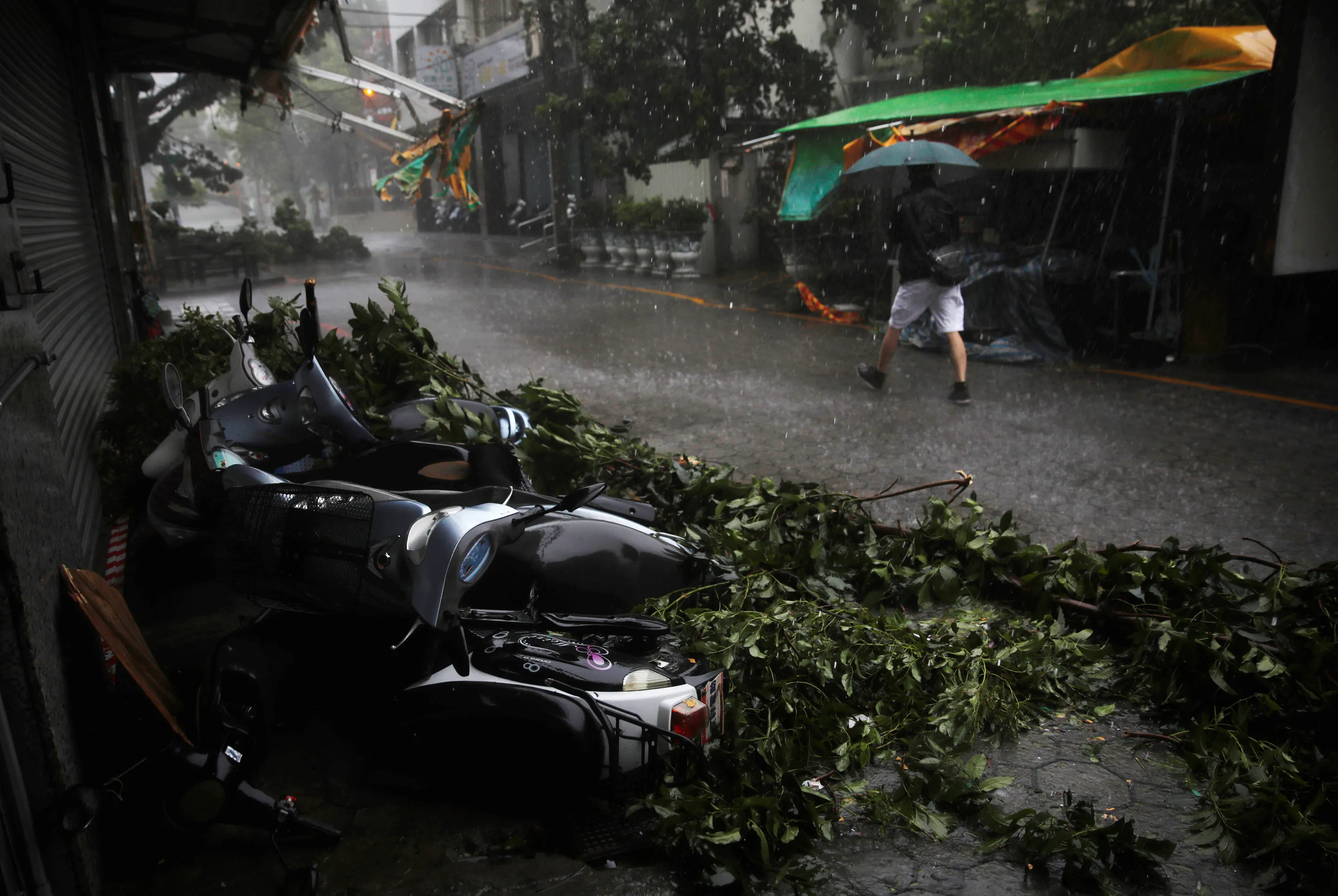 A man walks past motorcycles damaged by Typhoon Megi in Hualien, eastern Taiwan September 27, 2016. (Photo by Tyrone Siu/Reuters)